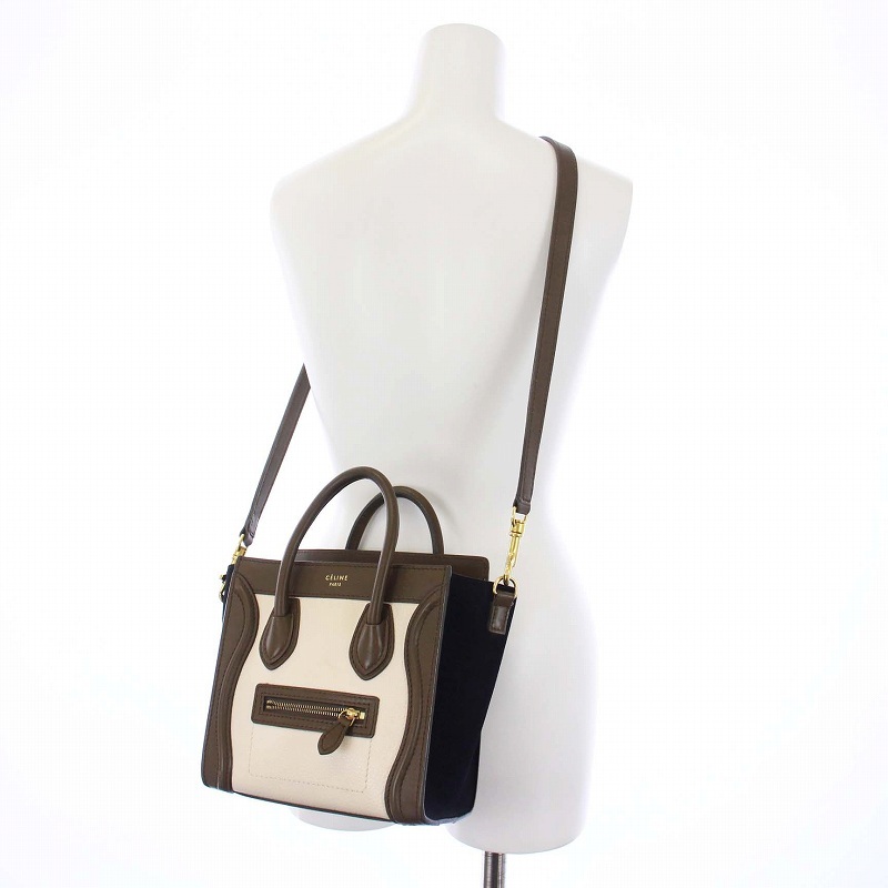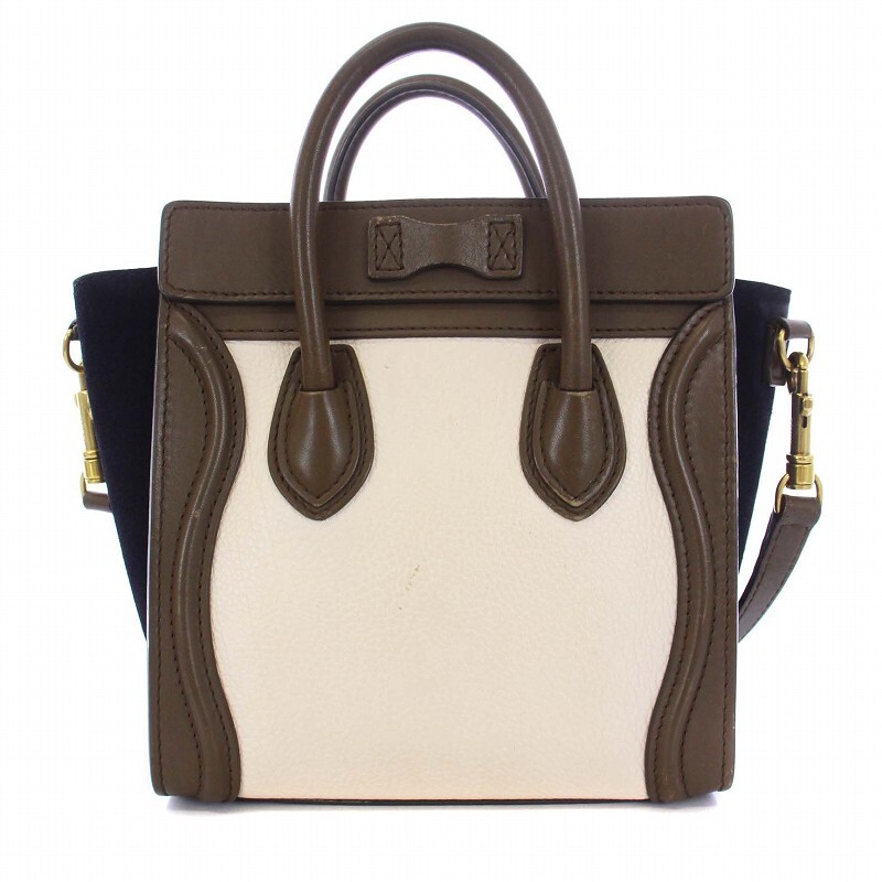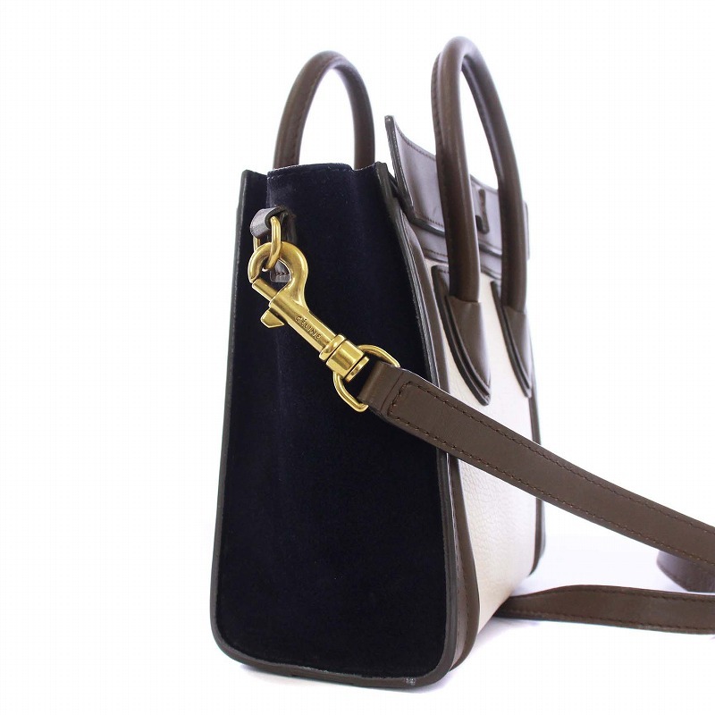 セリーヌ CELINE ラゲージ ナノショッパー 2WAY ハンドバッグ ショルダーバッグ レザー スエード アイボリー カーキ ネイビー 紺