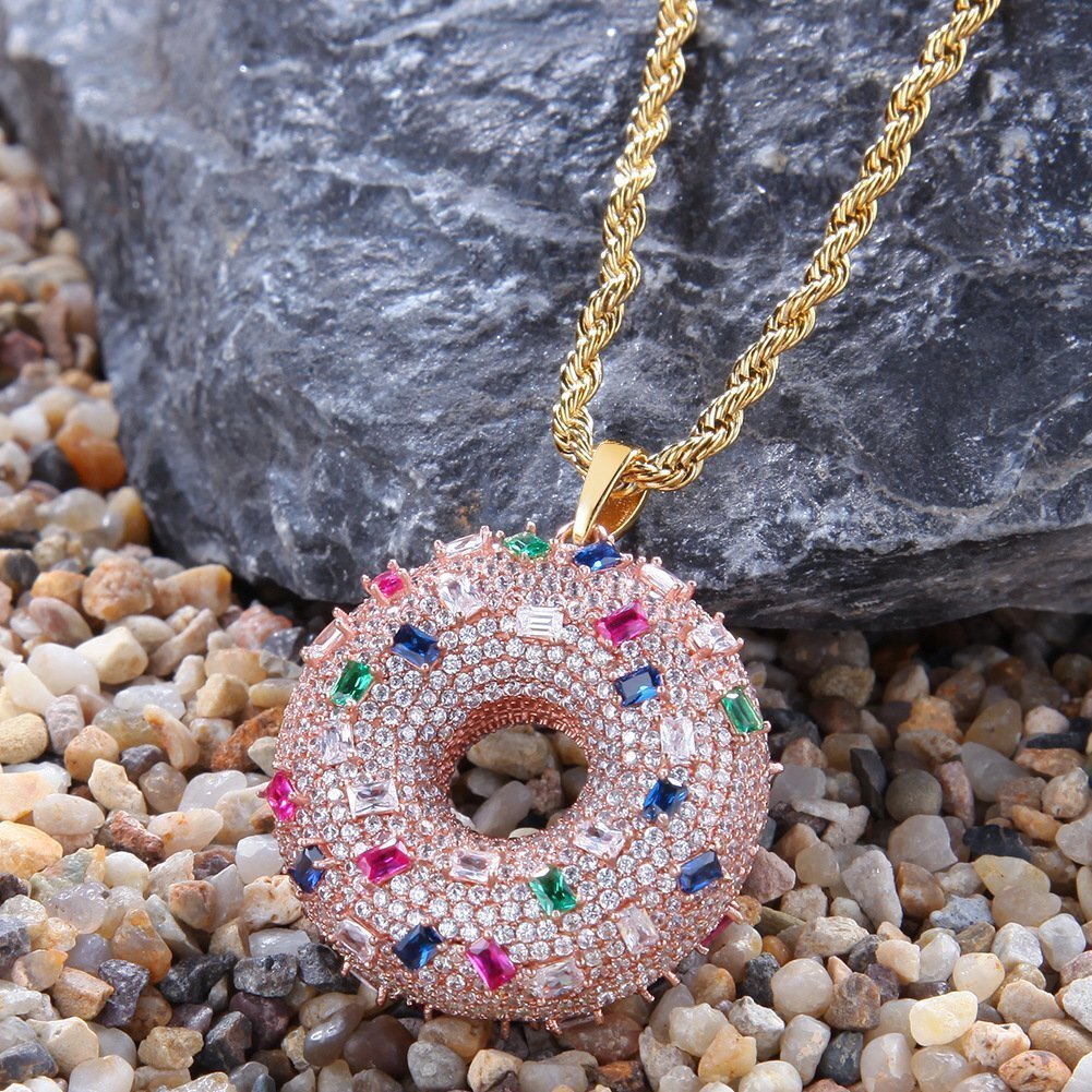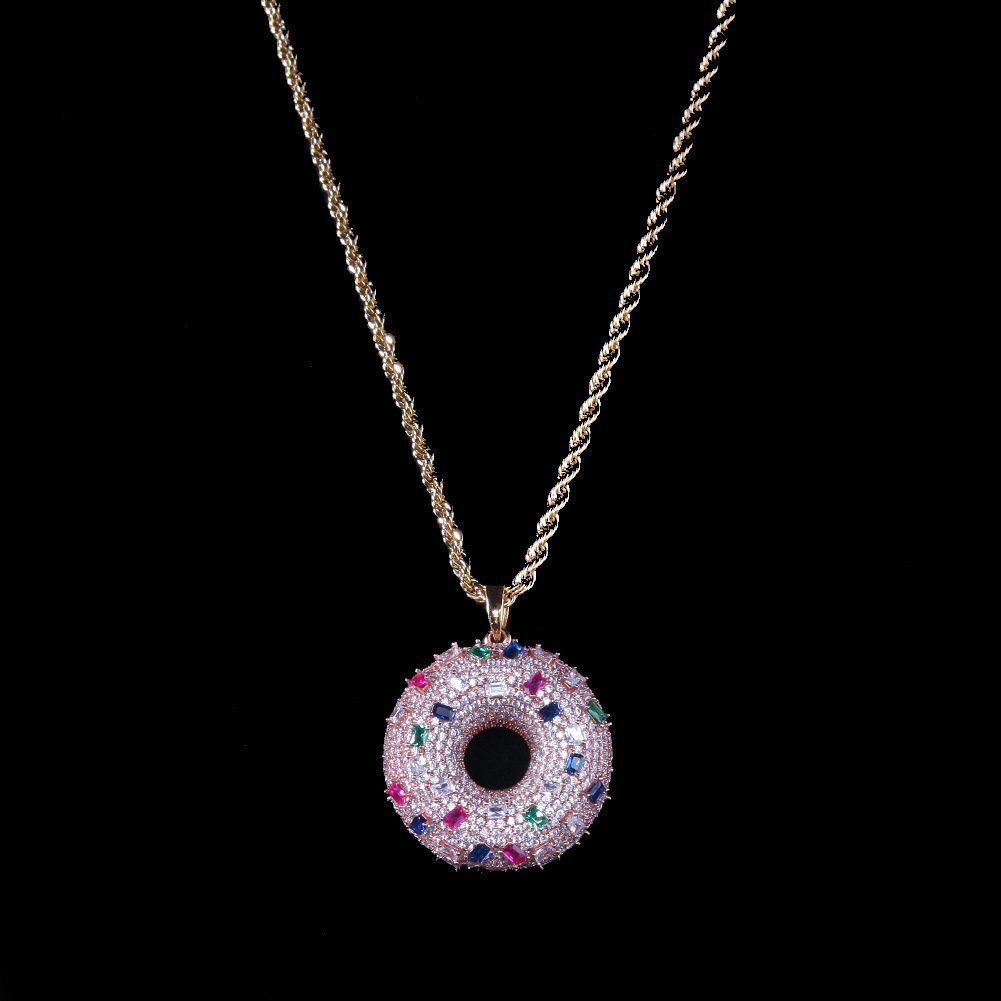 高品質 高級感 プレゼント ピンク 新品マイアミチェーン ネックレス ドーナツ 18KGP メンズ レディース 極太喜平