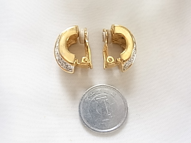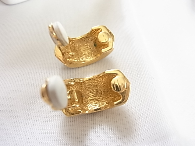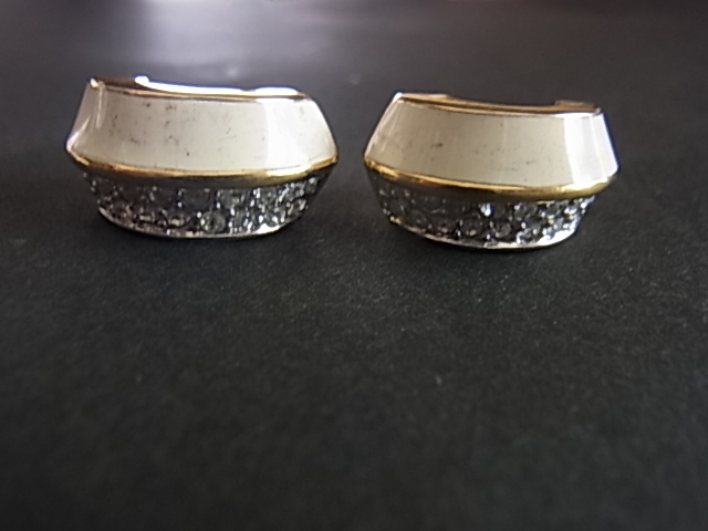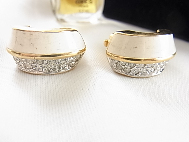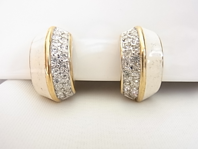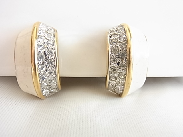 ビンテージ/ヴィンテージ キラキラ輝くクリアラインストーンとエナメル装飾のホワイトカラーが爽やかな印象 昭和レトロ イヤリング♪