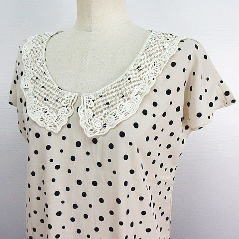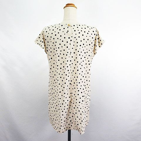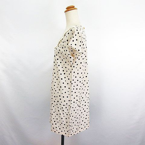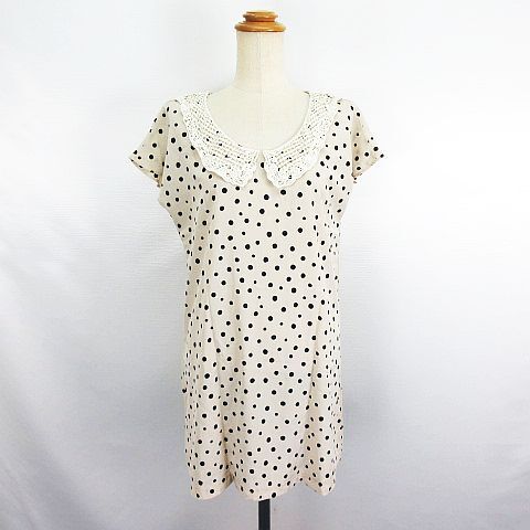 ヘザー Heather チュニック ワンピース フレンチスリーブ レースカラー ドット M ベージュ ※EKM レディース