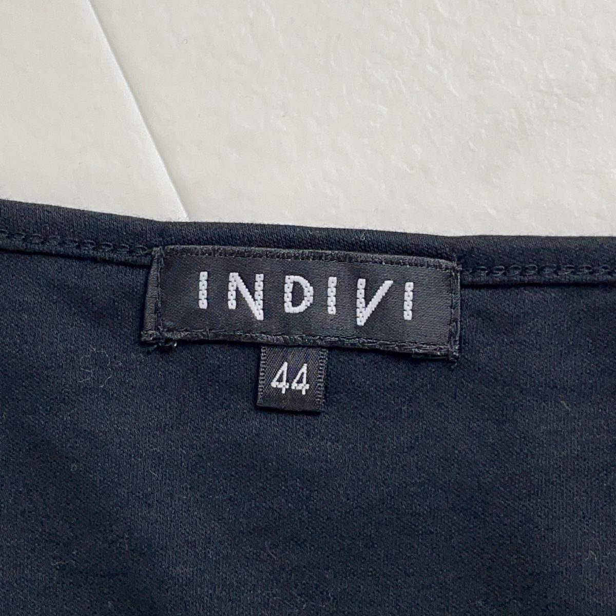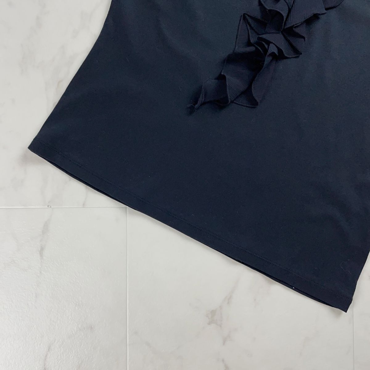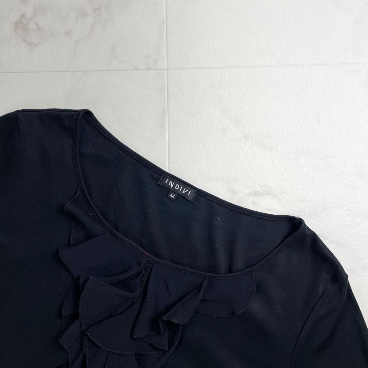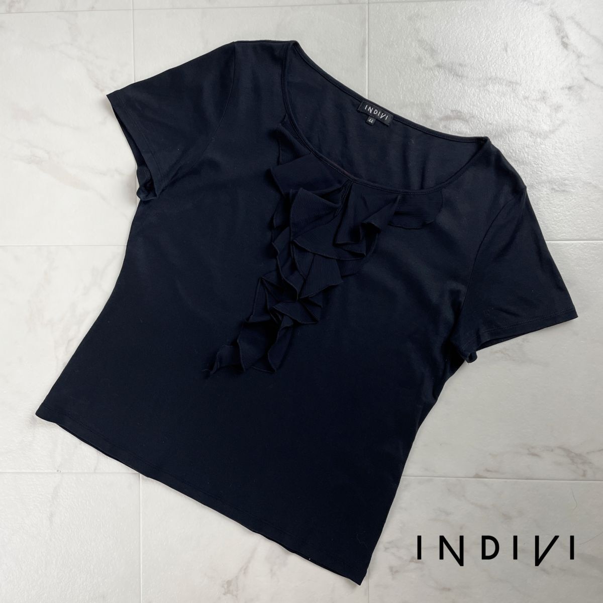 INDIVI インディヴィ フロントフリルTシャツ 半袖カットソー トップス レディース 黒 ブラック サイズ44*RC1450