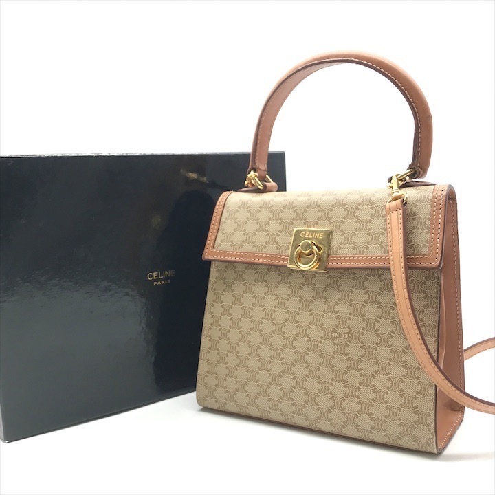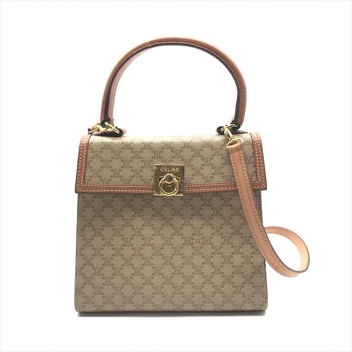 美品 CELINE セリーヌ マカダム トリオンフ サークル金具 2WAY ハンド ショルダー バッグ ベージュ k2253 | |||