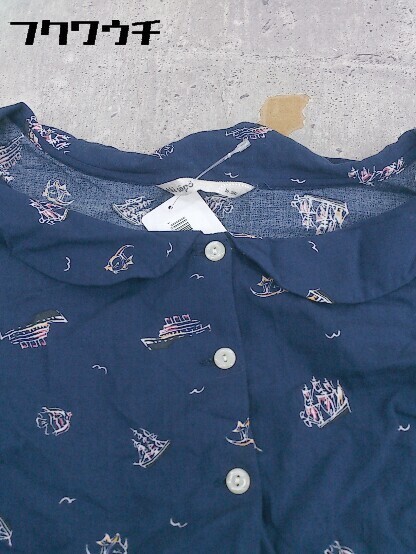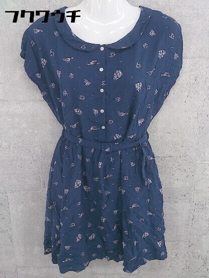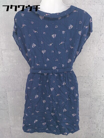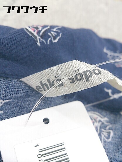 ◇ ehka sopo エヘカ ソポ 総柄 プリント フレンチスリーブ 膝丈 ワンピース サイズM ネイビー ホワイト レディース