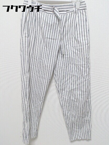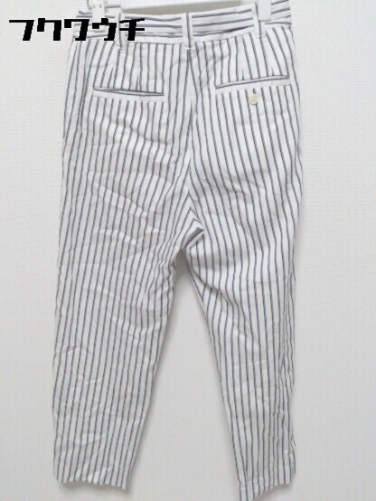 ◇ HUMAN WOMAN ヒューマンウーマン ベルト付き ストライプ 九分丈 アンクル パンツ サイズS ホワイト レディース