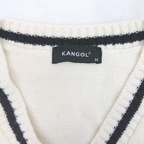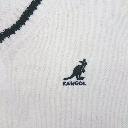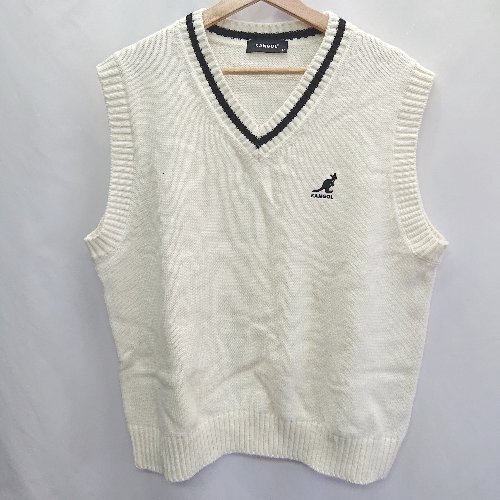 ◇ KANGOL カンゴール ロゴ刺? ノースリーブニットベスト サイズM ホワイト ブラック レディース メンズ E