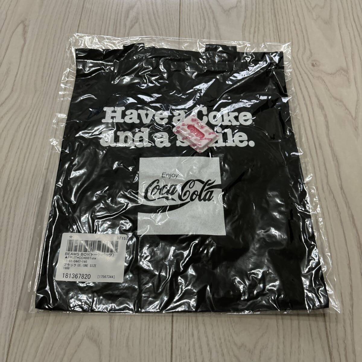 未使用●トートバッグ Coca-Cola&Fruit of The Loom/コカ・コーラ/フルーツ・オブ・ザルーム/BEAMS BOY/ビームスボーイ/ブラック★1483-4