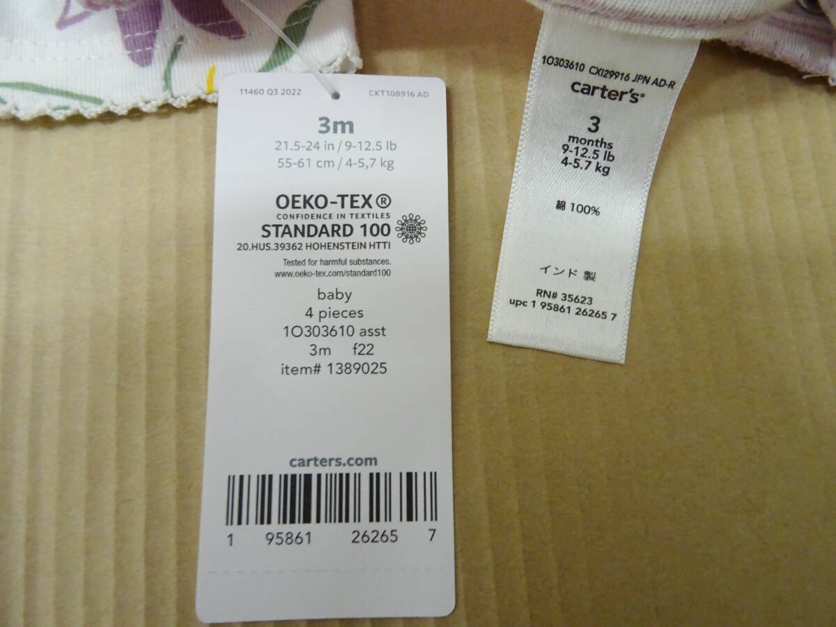 H-027-2 新品 カーターズ carter's ベビー 女の子 ロンパース + パンツ 4点セット 3M(0~3か月) 綿100% | |||