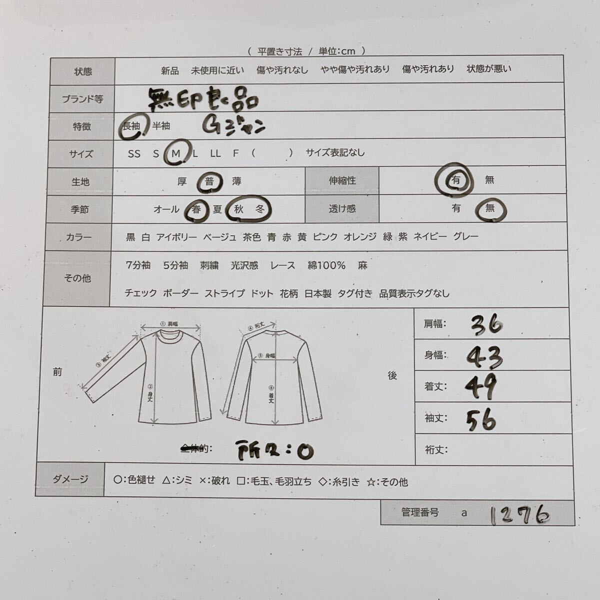 採寸データは写真のサイズ表をご確認ください!