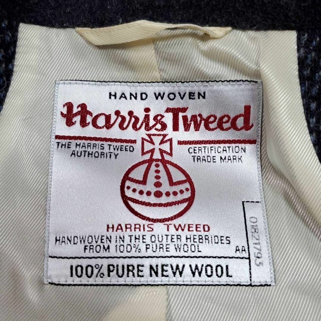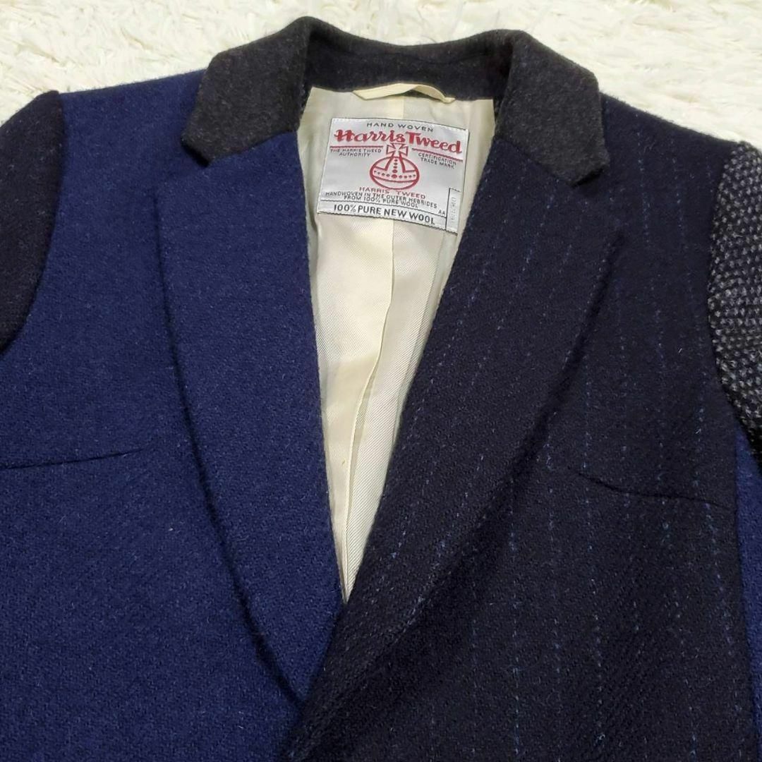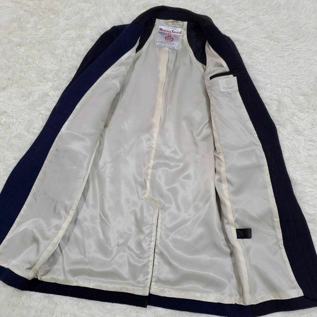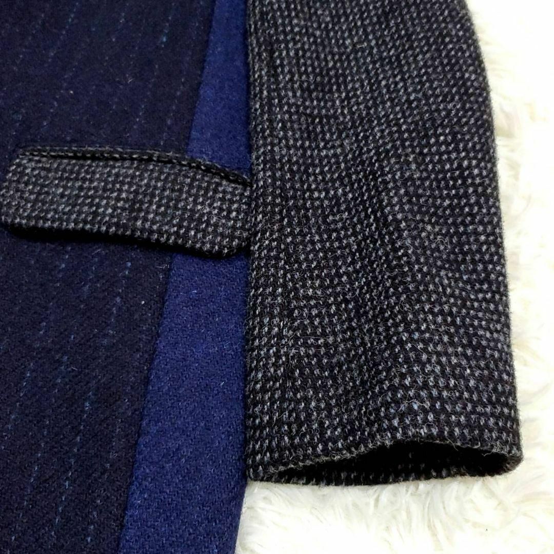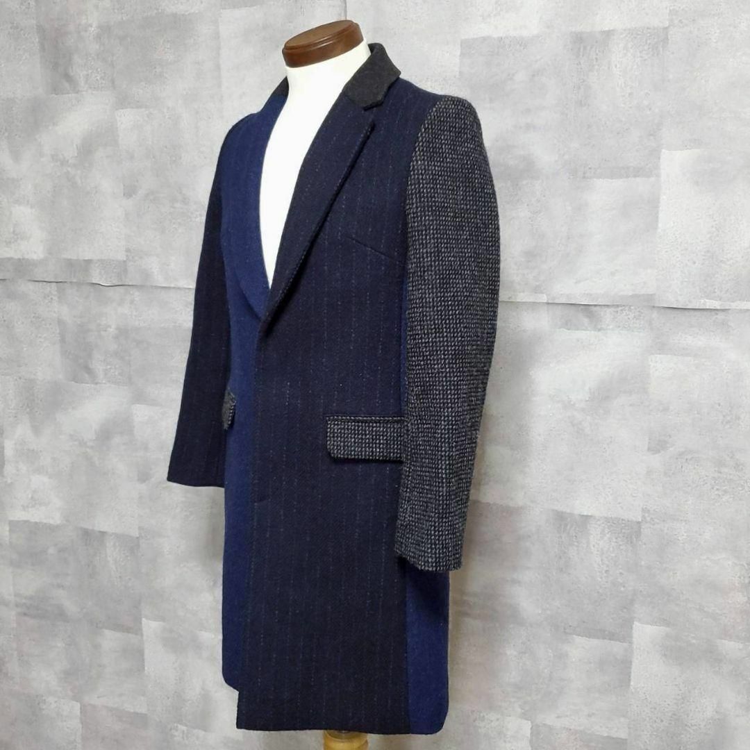 極美品 M ビューティーアンドユース ハリスツイード クレイジーパターン チェスター コート 紺 ウール100 BEAUTY&YOUTH Harris Tweed パッチワーク ネイビー アウター 羊毛 ユナイテッドローズ United Arrows