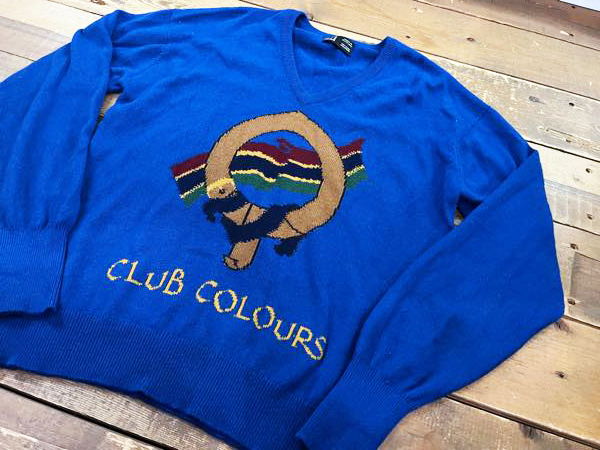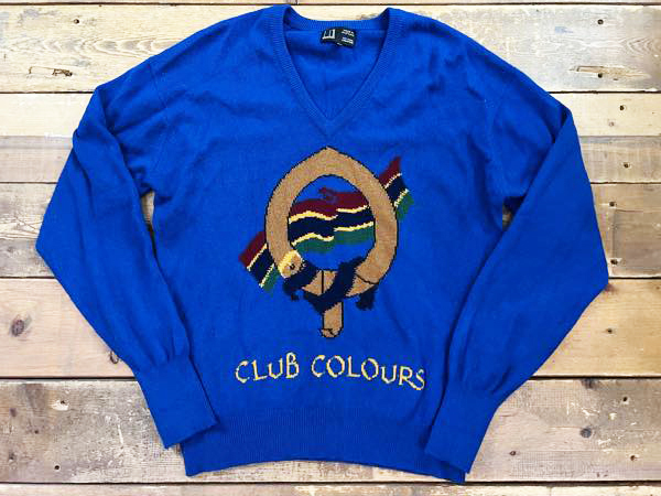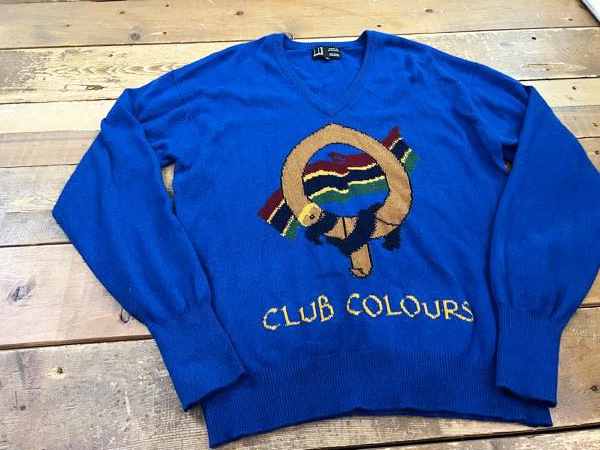 英国製 dunhill/ダンヒル カシミア100% CLUB COLOURSニット Vネックニット ニットソー セーター ブルー系 メンズ