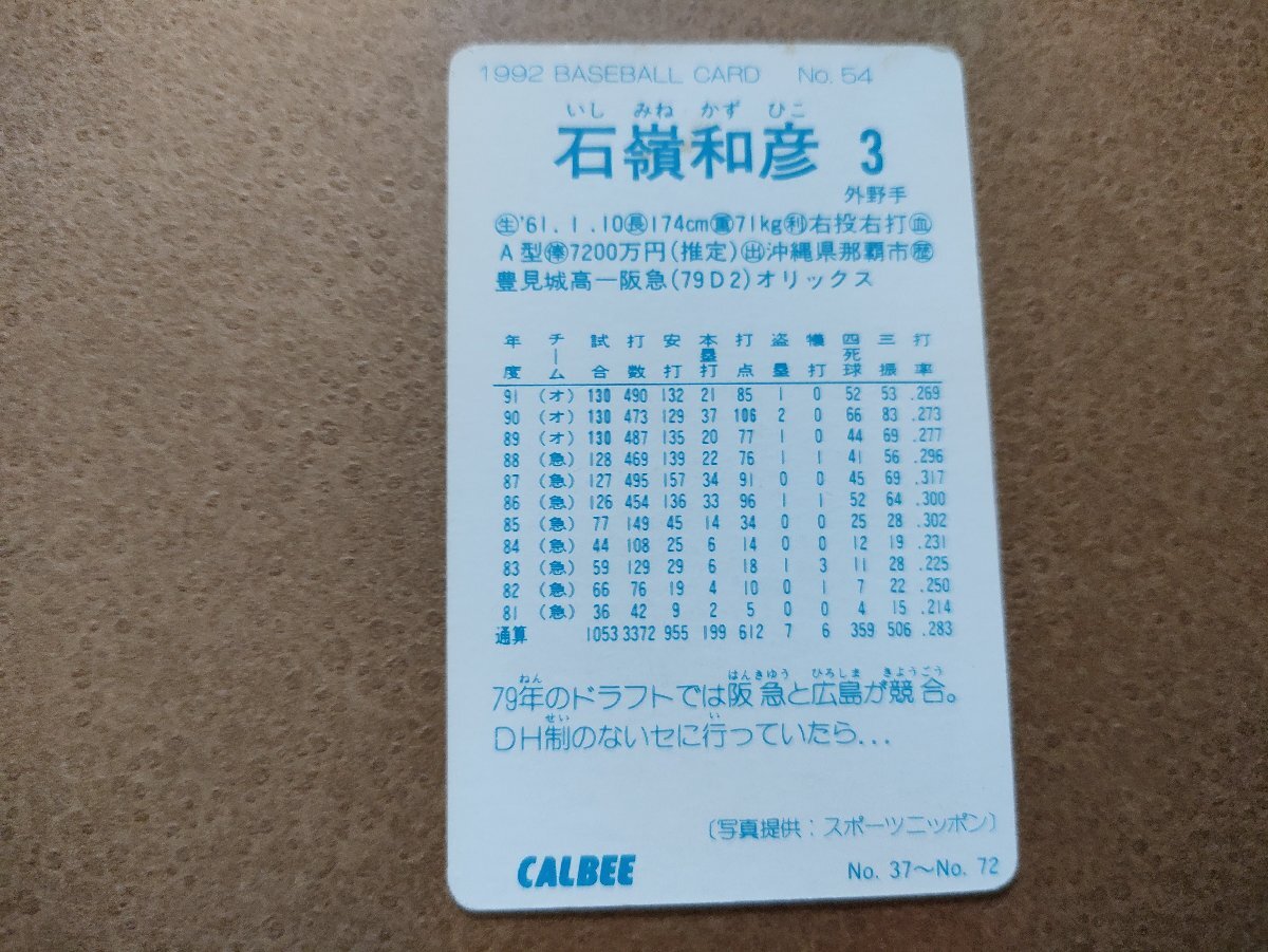 石嶺和彦 オリックス・ブルーウェーブ '92プロ野球カード カルビー
