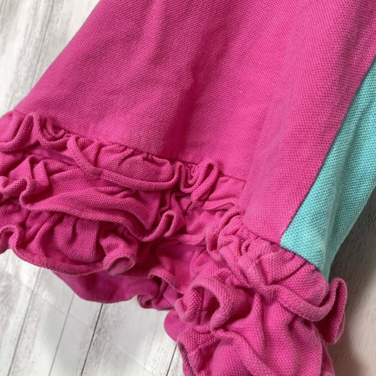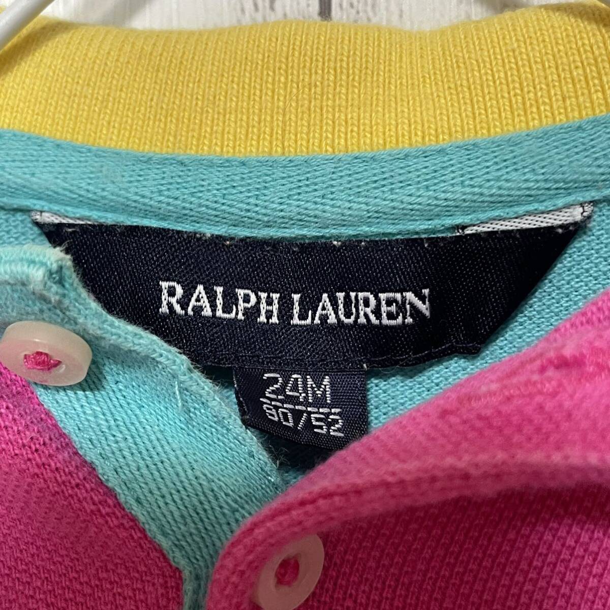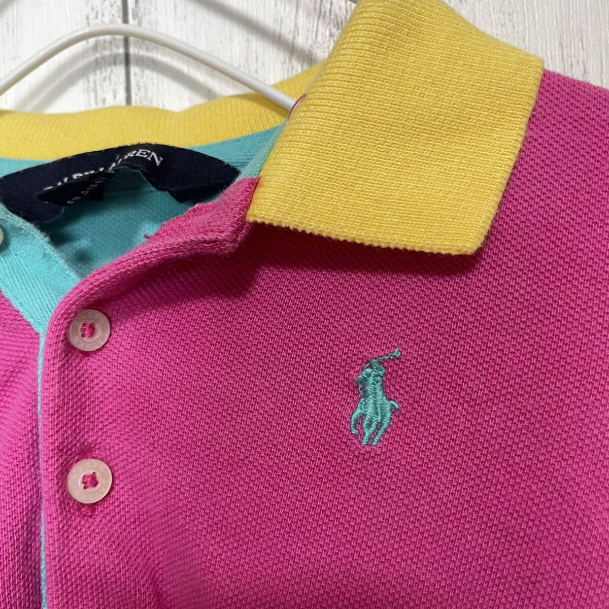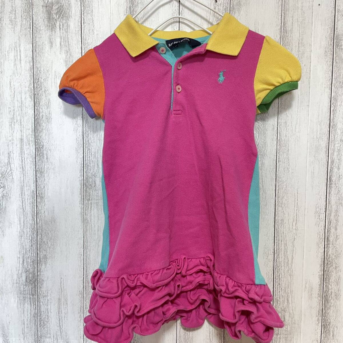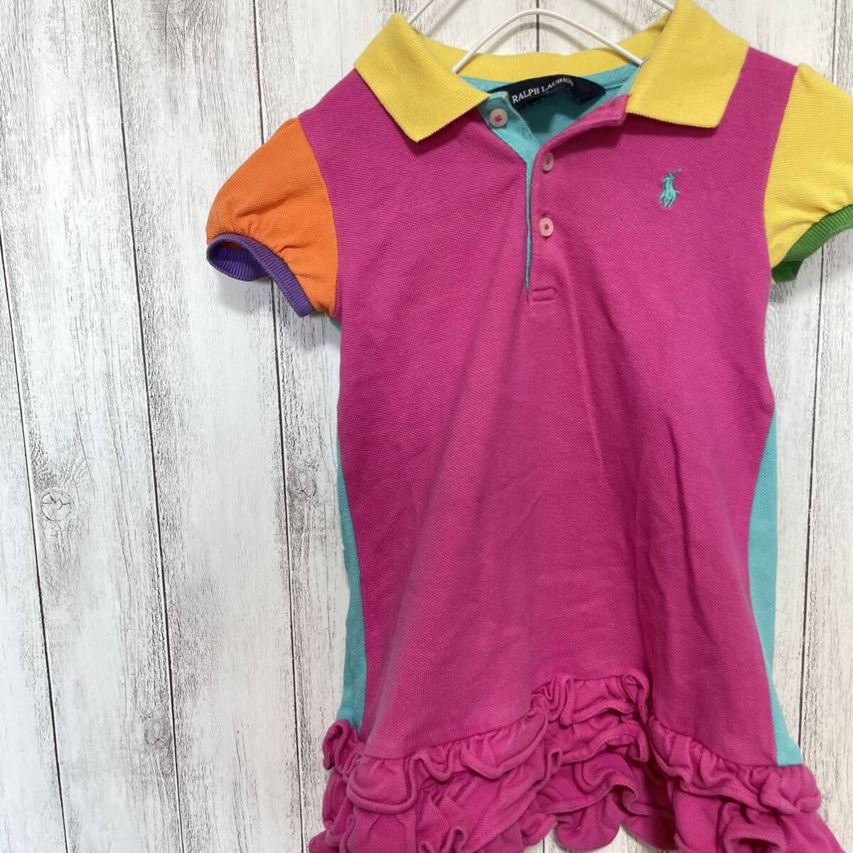 ラルフローレン ワンピース ポロワンピ 半袖 鹿の子 ワッペン フリル ロゴ刺繍 クレイジーパターン マルチカラー 24M