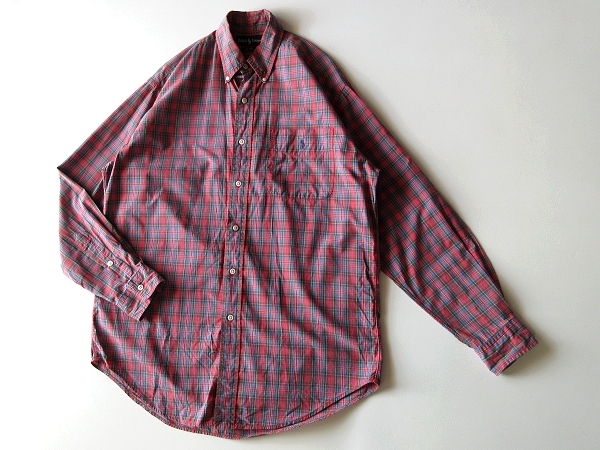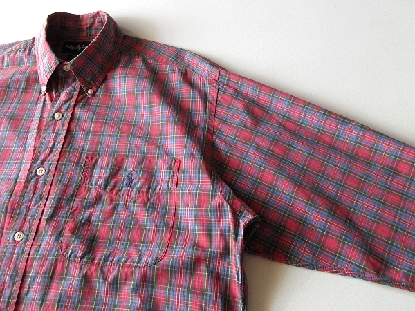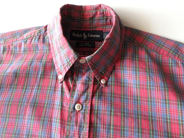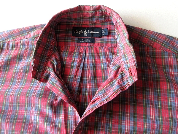 希少 90sビンテージ Ralph Lauren ラルフローレン BLAIRE ポロポニーロゴ刺繍 コットン チェック BDシャツ S 赤 青 USA企画 ネコポス対応