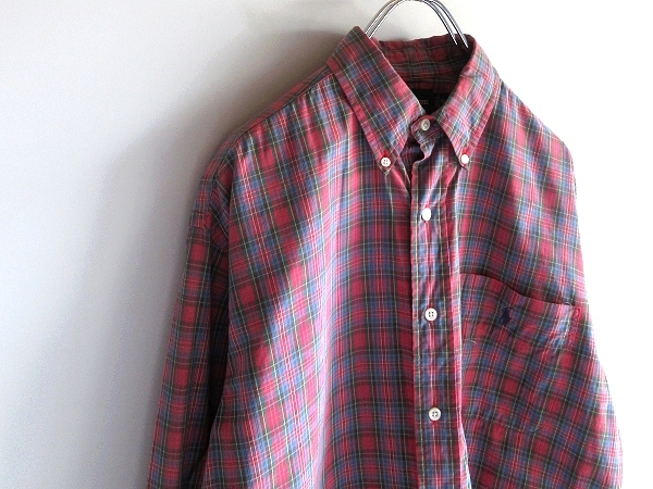 ラルフローレンのシャツ。チェックのコットン生地を使用しております。襟はボタンダウン。左胸のポロポニーのロゴ刺繍がさりげないアクセントになります。上質な素材使いと綺麗なシルエットで、様々なコーディネートにお使い頂ける一着です。