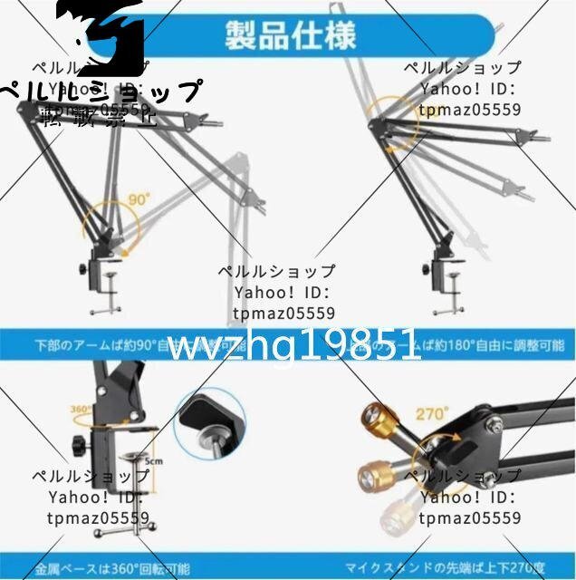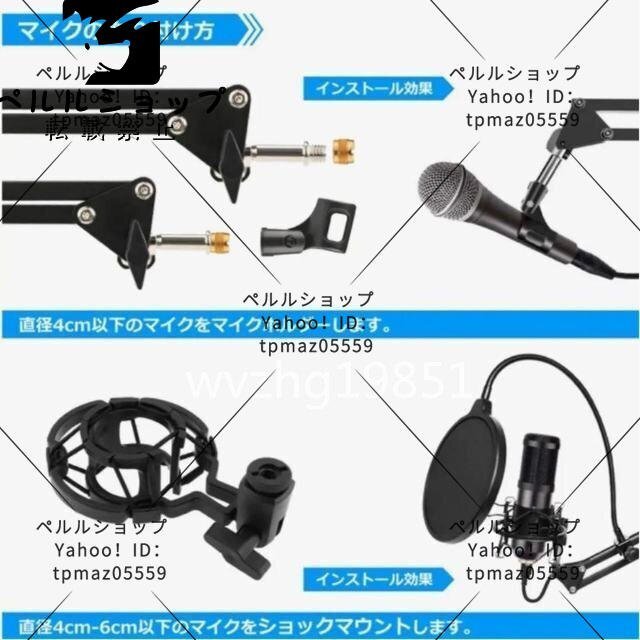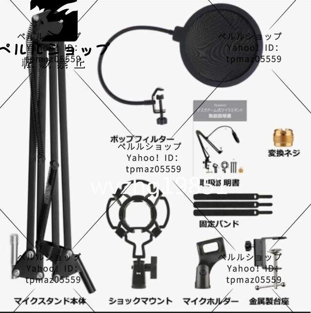 【便利で省スペース】 その他のタイプのマイクスタンド(ブームスタンド,ストレートスタンド,卓上自立型スタンドなど)より、このアーム伸縮可能タイプのスタンドは収納便利のメリットがあります。卓上のスペースをうまく利用することだけではなく、録音スタジオなどでご自分の好みに合わせてマイクの角度と高さを調節することも可能、録音と動画がスムーズに流れることを確報し、DTMステーションをネット生放送するには欠かせない工具です。 【優れた安定性】 このアームタイプマイクスタンドの本体とホルダーは金属製で、800gぐらい耐えられ、大体の汎用マイクに適用します。その強力なスプリングが使用中のブレと揺れをうまく防げます。なお、つくえと接触する箇所に保護コットンが付き、つくえの表面をすり傷などから守ります。 【付属品】 付属の2層保護シート付きポップ フィルターは録音をもっとやさしく聞こえるだけではなく、口から吹き出した水分によるマイクへの破損も防止でき、マイク使用寿命の延長に繋がります。本製品には3/8―5/8変換ネジも付帯され、ご自分の都合に合わせて接続すればいい。