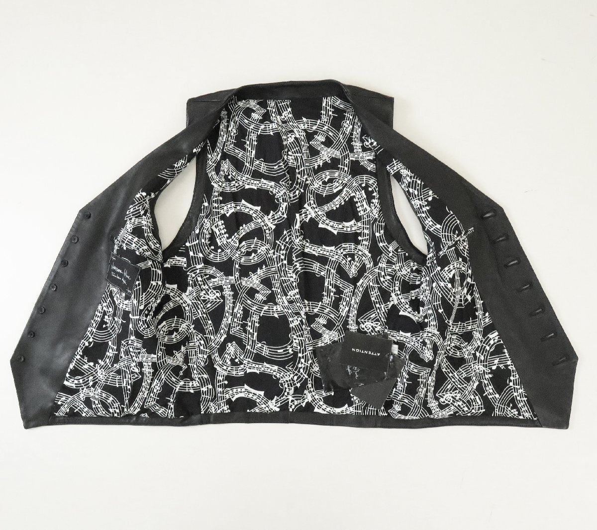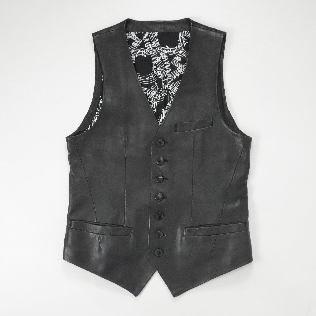 ● 希少レア 未使用 ★ NUMBER (N)INE ◆ 07S/S ABOUT A BOY期 7つボタン 音符 ベスト レザー 黒 サイズ2 ナンバーナイン ◆QV14