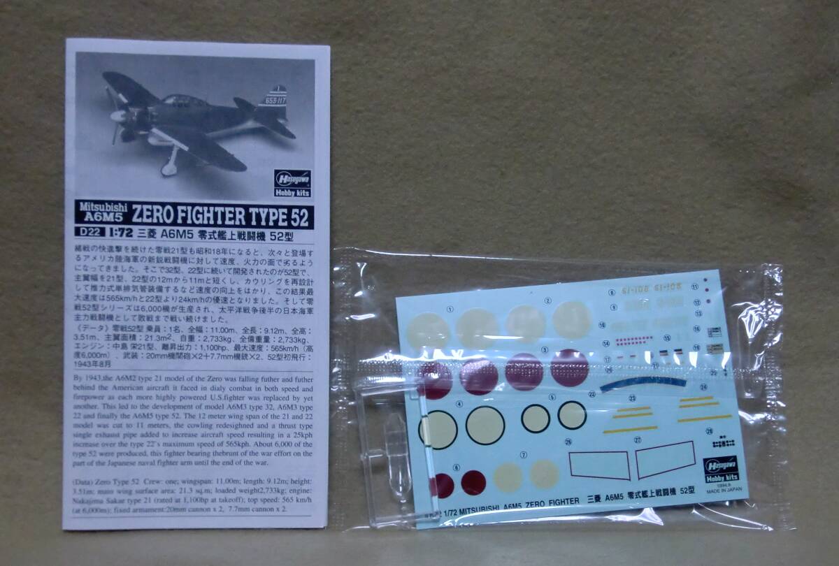 【ハセガワ】 日本海軍艦上戦闘機 三菱 A6M5 零戦52型 “ZEKE”  1/72スケール 【中古品/内袋未開封】