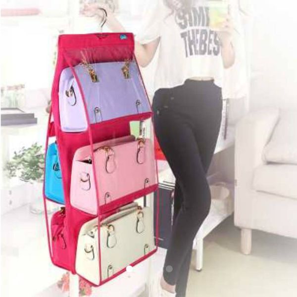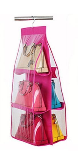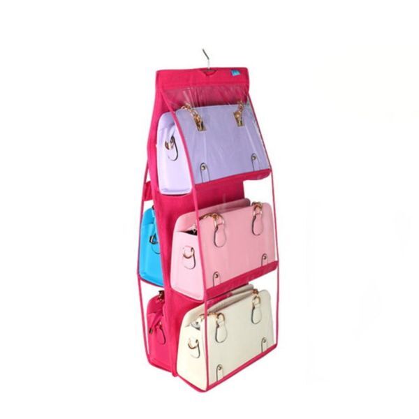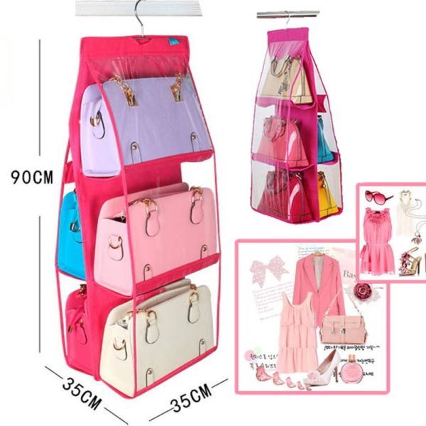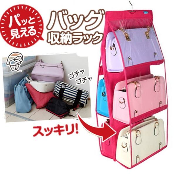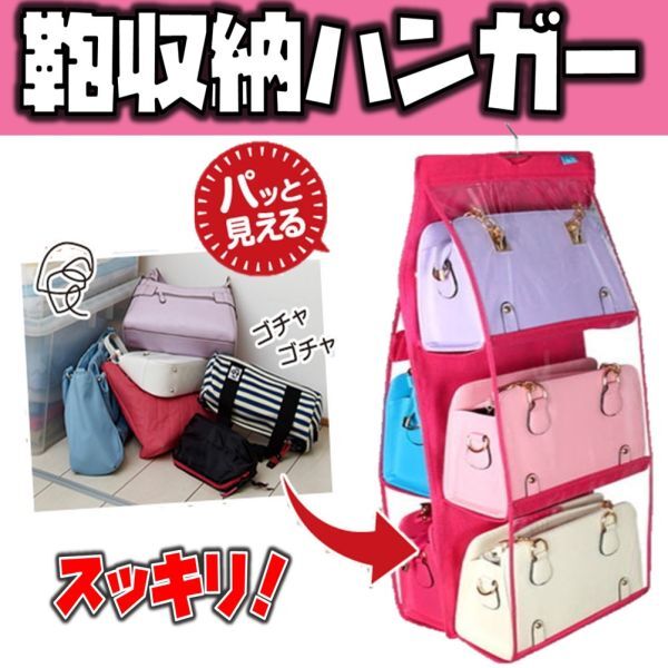 吊り下げ バッグ 収納 6個収納可 カバン ハンドバッグ 防塵 透明 ハンガー