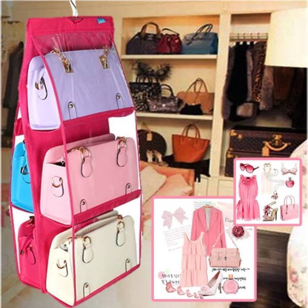 収納ラックバック ラック 鞄 かばん 型崩れ シワ 防止 フック付 6ポケットpvc収納袋 クローゼットオーガナイザー