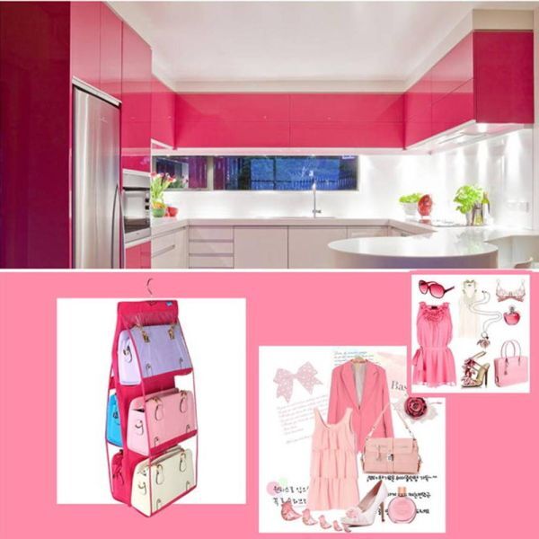 型崩れ防止 バッグハンガー バッグ収納 両面3段式ラック 吊り下げタイプ 6個収納 鞄収納 ハンガー ピンク カバン 収納 ラック