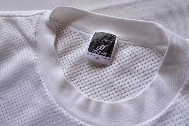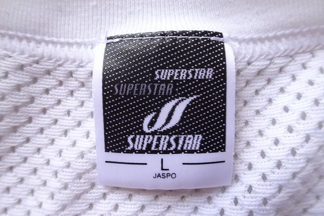 Mizuno SUPERSTAR/ミズノ/半袖Tシャツ/メッシュ素材/通気性/速乾性/文字プリント/スポーツ/白/ホワイト/Lサイズ(8/7R)