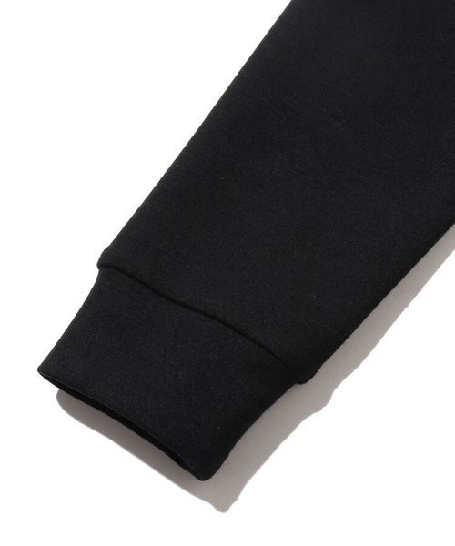 胸にロゴネームをあしらい、胸とポケット部分に合繊素材がアクセントとなっているジップアップアウター。