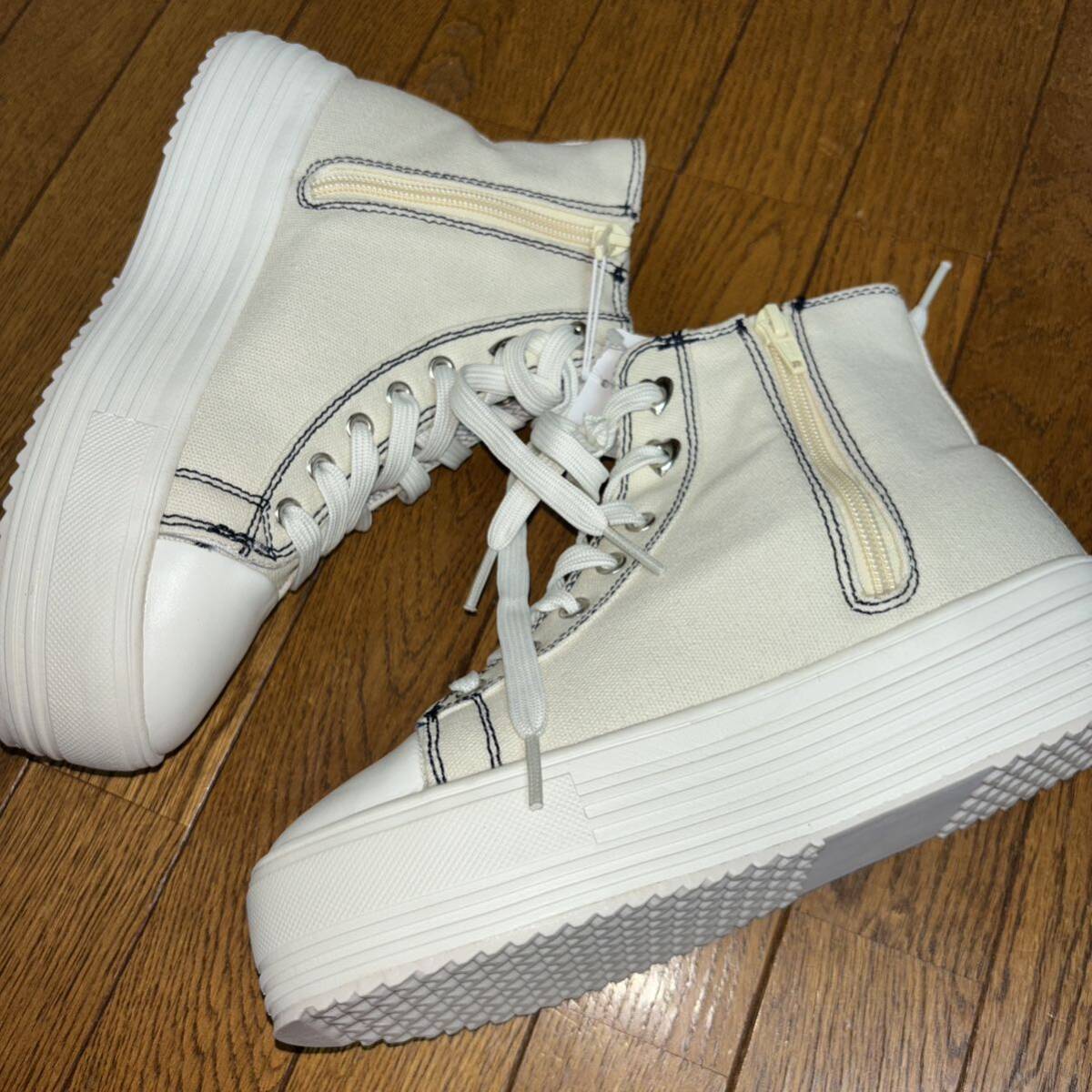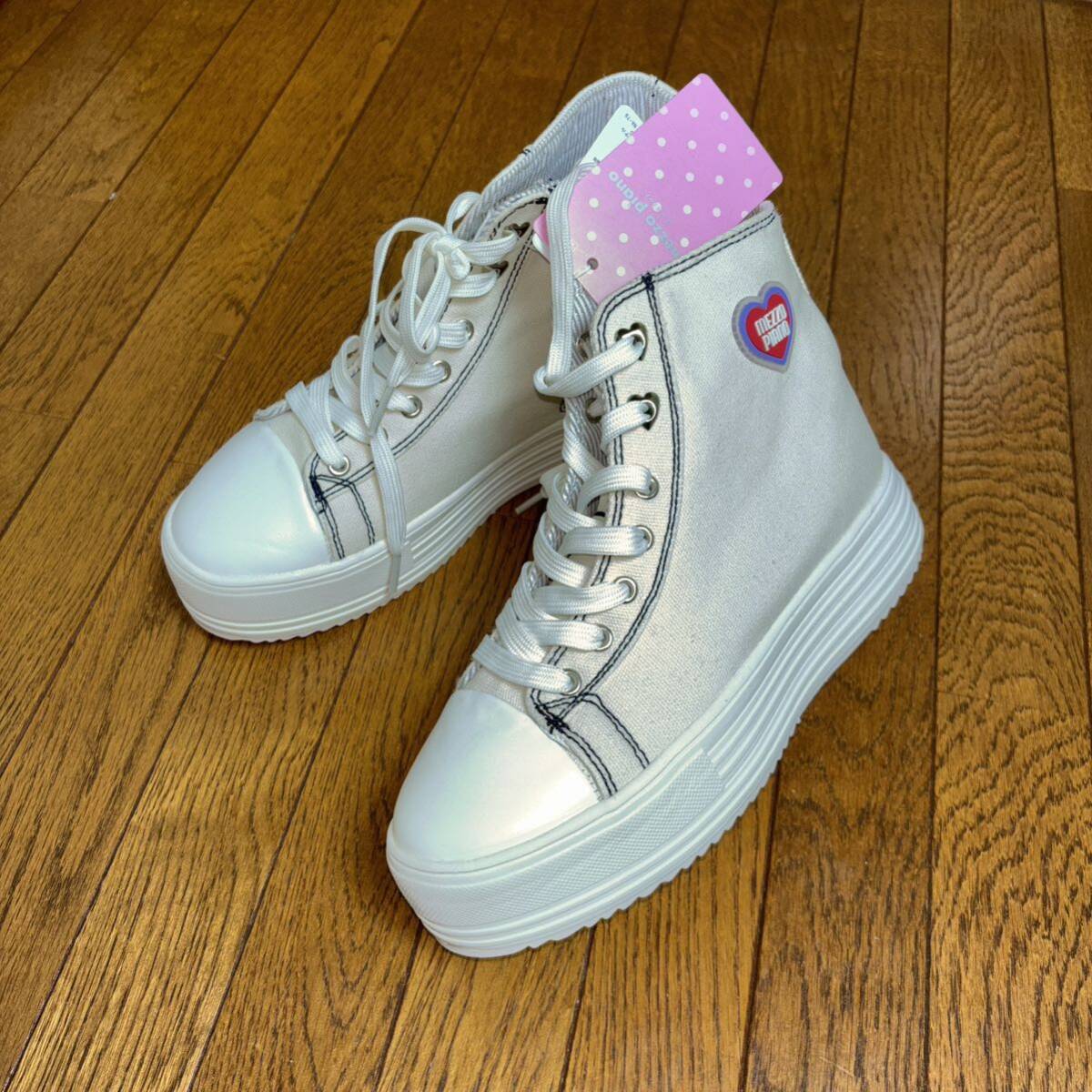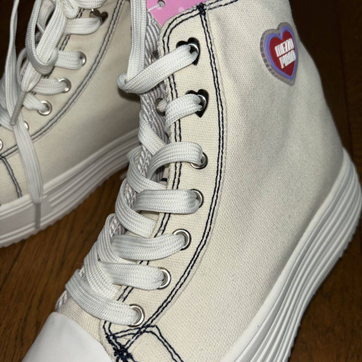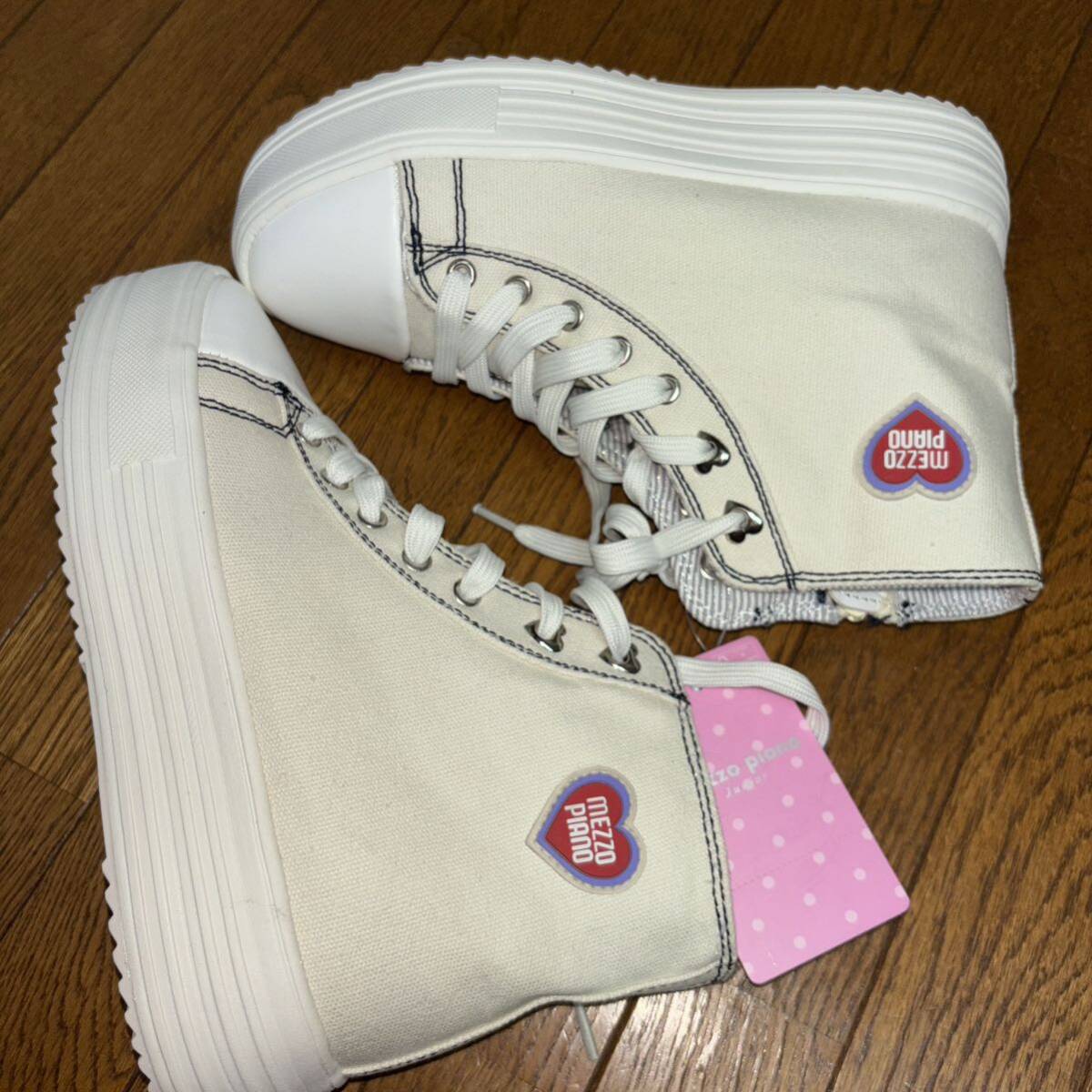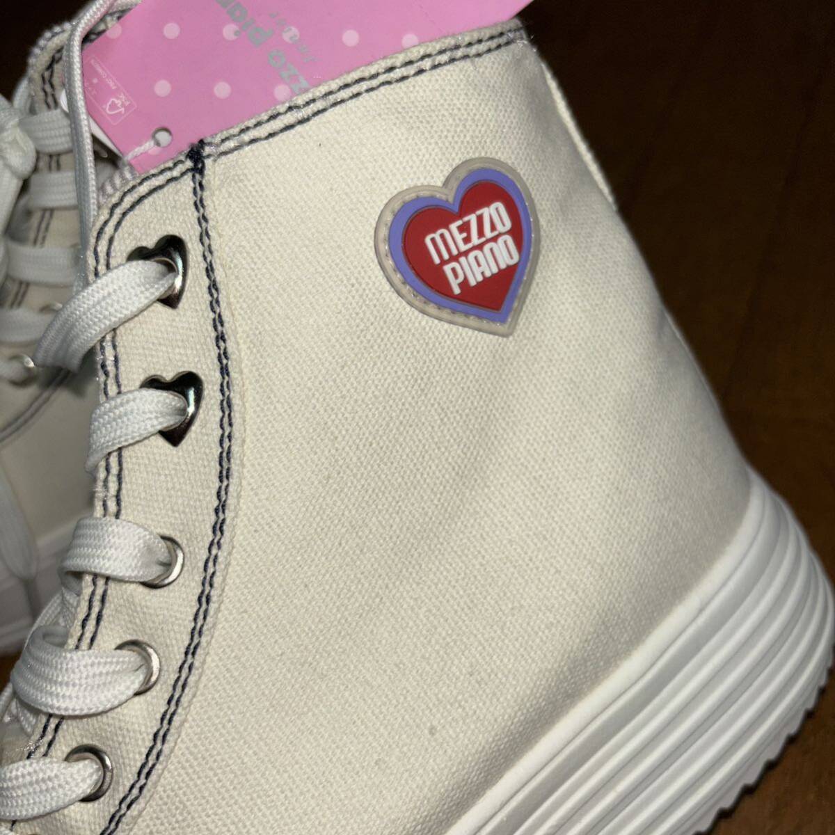 《新品》メゾピアノ、キュートな、ハートロゴ ハイカット厚底スニーカー L(24.0-24.5)
