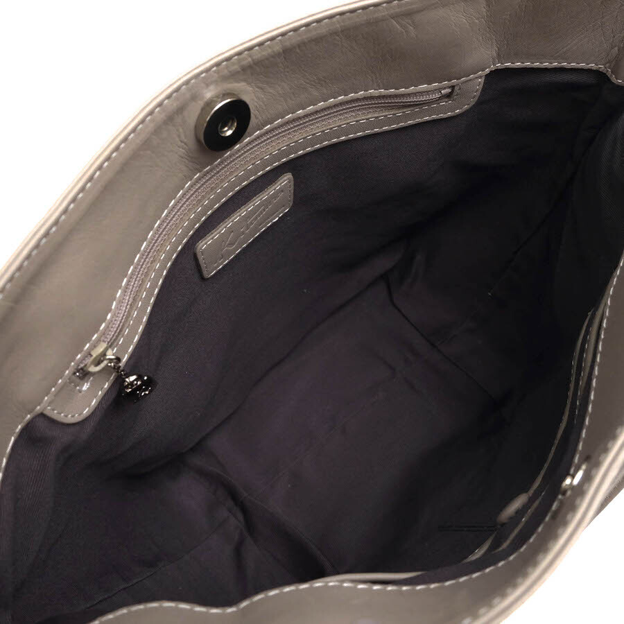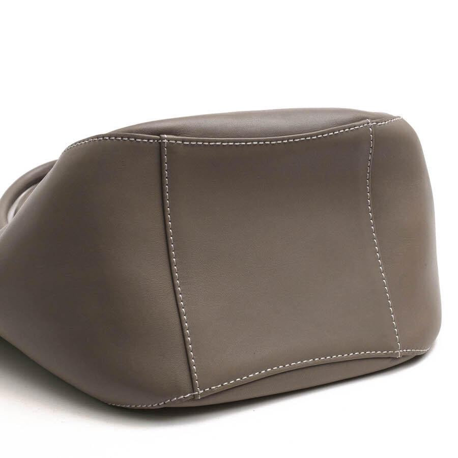 上品な光沢を持つレザーのセミショルダーバッグ。コンパクトなサイズながら、幅広いマチと整理整頓ができる内ポケットで収納力も抜群。ヌメ革をたっぷりとオイルで仕上げ、上品なツヤ感と風合いが魅力的。知的で大人な雰囲気を漂わせるクラシカルな印象で、太めのステッチがアクセントに。肩に掛けた時のフィット感も抜群で、背面の外ポケットも便利です。シンプルでエレガントなバッグです。 |