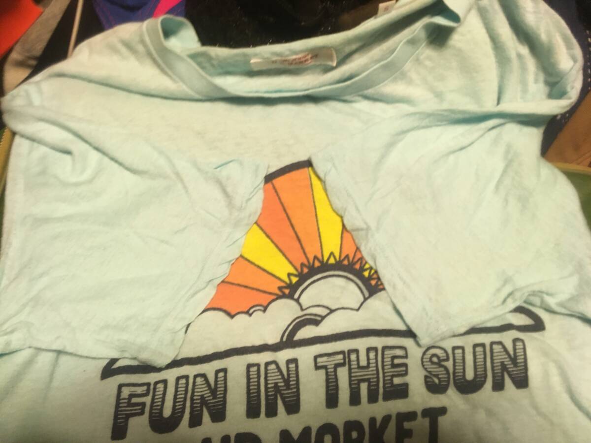 シンプルで、フロントにはサンライズ風のプリントが入ります。