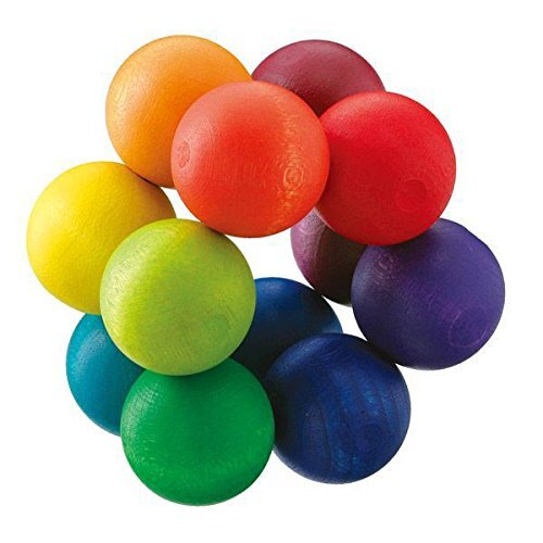 「ラトル クーゲルン<ベリ・デザイン社 ドイツ>」▼797681871578▼(商品説明)・マルチカラー 木玉パーツの直径2.5cm ・材質:カエデ、ブナ・生産国:ドイツ・サイズ:木玉パーツの直径2.5cm・対象年齢: 幼児説明 形のアイデアとベリカラーが魅力のドイツ・ベリ・デザイン社のベビーのための自信作! 丸まったり、広がったり…握るといろいろな形に変化するので、「自分の手が動く」ことに夢中の赤ちゃんに、ぜひ手渡したい木のおもちゃです。 手と目を働かせることによって、赤ちゃんの脳を刺激する知育玩具としても大活躍です♪ 虹色を基本としたグラデーションは、おとなこどもを問わず人をひきつけ、球や直方体の様々な木製パーツに、思わずさわって遊んでみたくなる不思議さがあるベリ・デザイン社のおもちゃは、自身がつくる「作品」を「幾何学アート」と呼んでいます。 欧州連合の法律に基づいた「製造物製造基準」に適合していることを示す「CEマーク」合格認定を受けたおもちゃです。
