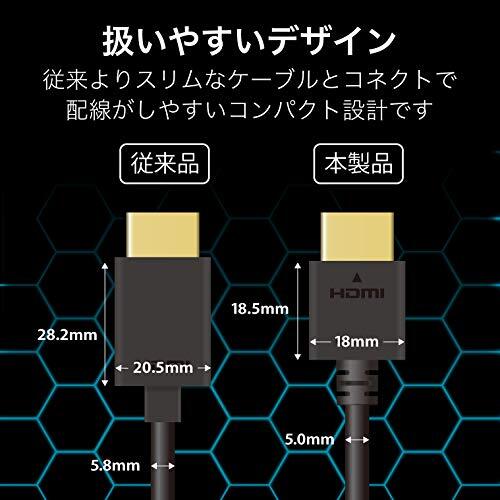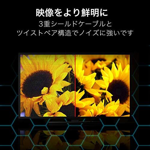 「エレコム HDMI ケーブル 5m 4K × 2K対応 ブラック DH-HD14EB50BK」▼4953103361249▼(商品説明)5.0m [ブラック]・ブラック 5.0m DH-HD14EB50BK・・Size:5.0m・4K/30Hzの解像度に対応したHDMIケーブルです。High Speed HDMI Cable with Ethernet認証の取得により、安定した映像信号と音声信号の伝送を実現しています。・1本のケーブルで、映像信号と音声信号をデジタルのままで高速伝送するだけでなく、イーサネット信号の双方向通信を実現します。・100Mbpsのイーサネット通信を実現する、HEC(HDMIイーサネットチャンネル)に対応しています。・デジタル音声をテレビなどの表示機器からAVアンプなどの出力機器へ伝送できる、ARC(オーディオリターンチャンネル)に対応しています。・4K(3840×2160px)/30Hz、Full HD(1920×1080px)/120Hzの解像度に対応しております。説明 【 仕様 】 ■対応機種:HDMI(タイプA・19ピン)側:HDMI入力端子を持つ液晶テレビ・プラズマテレビ・プロジェクター等、HDMI(タイプA・19ピン)側:HDMI出力端子を持つAV機器・ゲーム機等 ■規格:High Speed HDMI Cable with Ethernet (HDMI 1.4a)認証 ■コネクタ形状1:HDMIプラグ(タイプA・19ピン) ■コネクタ形状2:HDMIプラグ(タイプA・19ピン) ■ケーブルタイプ:スタンダード ■伝送速度:10.2Gbps ■対応解像度:4K(3840×2160px)/30Hz、Full HD(1980×1080px)/120Hz ■シールド方法:線材部:3重シールド、コネクター部:金属シェルシールド ■プラグメッキ仕様:金メッキピン・金メッキプラグ ■ケーブル長:約5m ※コネクター含まず ■ケーブル太さ:約6.5mm ■カラー:ブラック ■環境配慮事項:EU RoHS指令準拠(10物質) 【 説明 】 ■4K/30Hzの解像度に対応したHDMIケーブルです。High Speed HDMI Cable with Ethernet認証の取得により、安定した映像信号と音声信号の伝送を実現しています。 ■1本のケーブルで、映像信号と音声信号をデジタルのままで高速伝送するだけでなく、イーサネット信号の双方向通信を実現します。 ■100Mbpsのイーサネット通信を実現する、HEC(HDMIイーサネットチャンネル)に対応しています。 ■デジタル音声をテレビなどの表示機器からAVアンプなどの出力機器へ伝送できる、ARC(オーディオリターンチャンネル)に対応しています。 ■4K(3840×2160px)/30Hz、Full HD(1920×1080px)/120Hzの解像度に対応しております。 ■従来品よりも約22%細径化したスリムケーブルを採用しています。 ■シェル部分の断面は18×8.5mm、長さは18.5mmとコンパクトサイズを実現しています。狭い場所でも抜き挿ししやすく、干渉しにくい構造です。 ■シェル部分を台形にデザインしたことで、触るだけでコネクターの向きを識別可能です。 ■外部ノイズの干渉から信号を保護する3重シールドケーブルを採用しています。 ■コネクター部分へのノイズの侵入を防ぐ金属シェルコネクターを採用しています。 ■サビなどに強く信号劣化を抑える金メッキピン・金メッキプラグを採用しています。 【商品に関するお問い合わせ】 エレコム総合インフォメーションセンター TEL. 0570-084-465 FAX. 0570-050-012 受付時間 / 10:00~19:00 年中無休