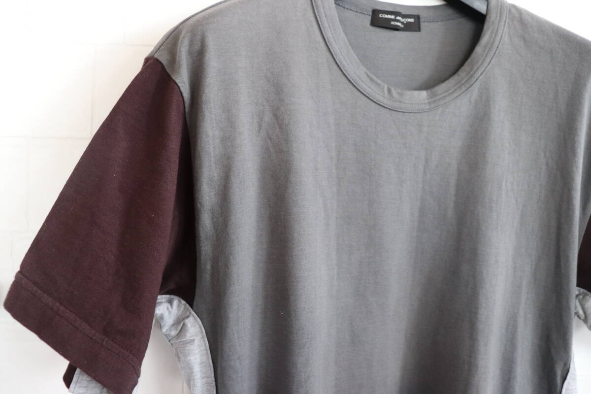 即決 01AW COMME des GARCONS HOMME PLUS コムデギャルソンオムプリュス 2001AW サイケ期 サイド充て布付き パネル切替パッチワークTシャツ