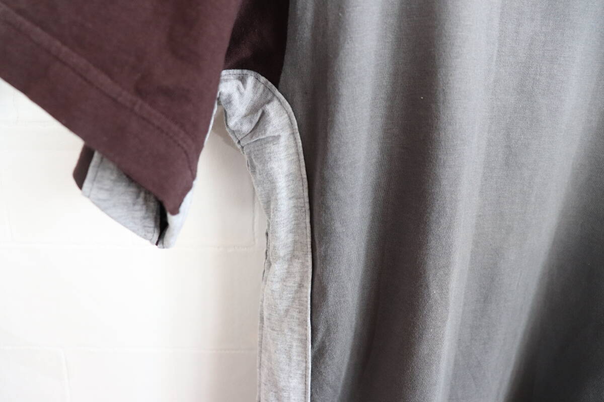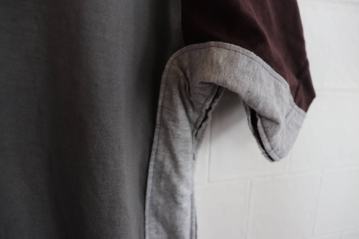 ・身頃はチャコール、アームはバーガンディーのパネル切替で、脇下&サイドにはグレーの充て布が施されております。