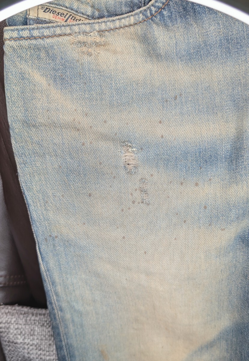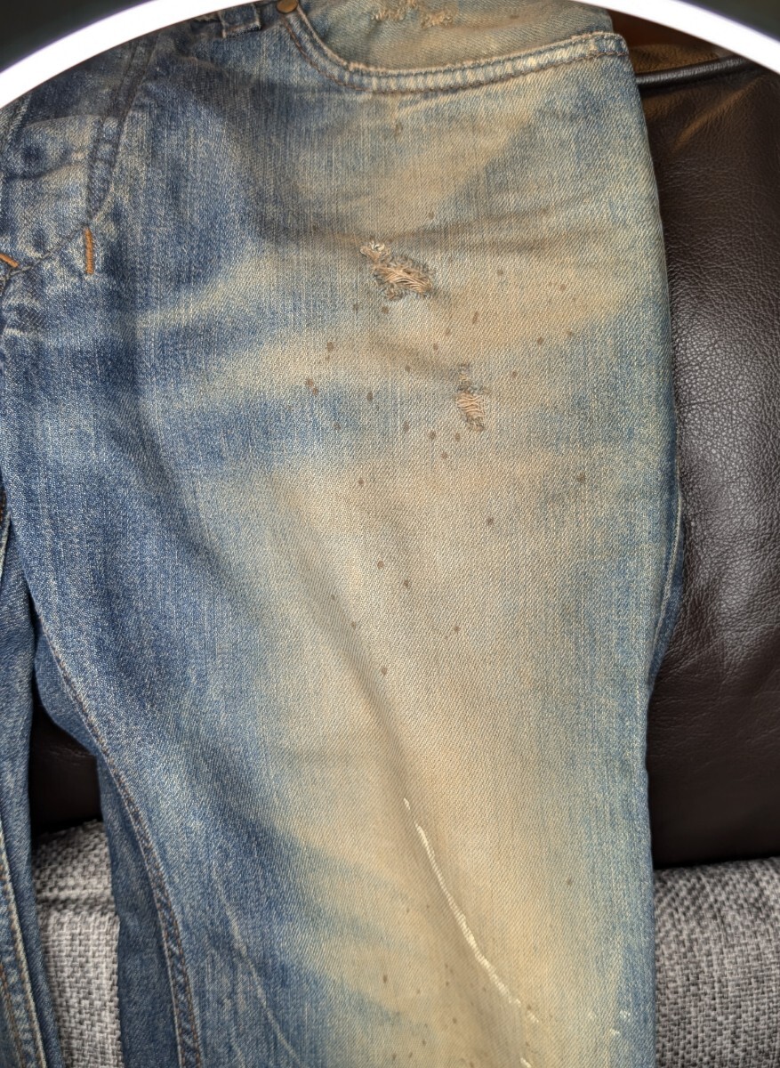 腿あたりの斑点/ペンキなどは最初からのデザインです。