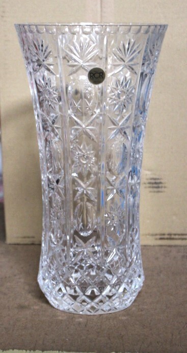 ■ せ-909 クリスタルガラス 花瓶 未使用 ロイヤル クリスタル ロック イタリア製 美品  高さ30cm 口径15.5cm 底径9.5cm 重さ3.14kg
