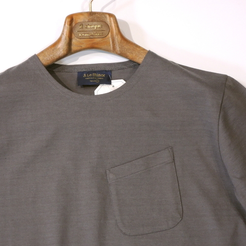 ◇商品説明 Le minorのコットンメリヤス 半袖クルーネックTシャツです。シンプルなソリッドTシャツに斜めにカットした胸ポケットをあしらい、上品で清潔感のある一枚に仕上がっています。 夏には一枚でもサマになり、前後のシーズンではジャケットやブルゾンのインナーとしても重宝します。ベーシックかつ上質な一枚は、トレンドに左右されず長くお使いいただけます。 素材はナチュラルな風合いでさらりとした上質なフランス産コットンを使用。ライトウエイトながらもしっかりとした打ち込みの生地は一枚で着ても安心感があり、上質なコットンは肌触りの良いソフトな着心地です。 シルエットはウエストを絞らずにボディにややゆとりを持たせた、程よいゆとりのあるスリムフィット。品の良い大人のカジュアルスタイルに合わせやすい洗練されたシルエットです。 サイズ詳細 肩幅 42cm 《左右の肩先から肩先直線》 胸囲 102cm 《袖付け根位置の脇下の両端直線×2》 胴囲 102cm 《身頃裾から20cm上の両端直線×2》 着丈 67cm 《後襟付け根の中心から裾まで》 袖丈 21.5cm 《肩先と袖の接合部から袖先まで》 ※平置きで計測しています。商品によって個体差がありますので多少の誤差はご了承ください。 |
