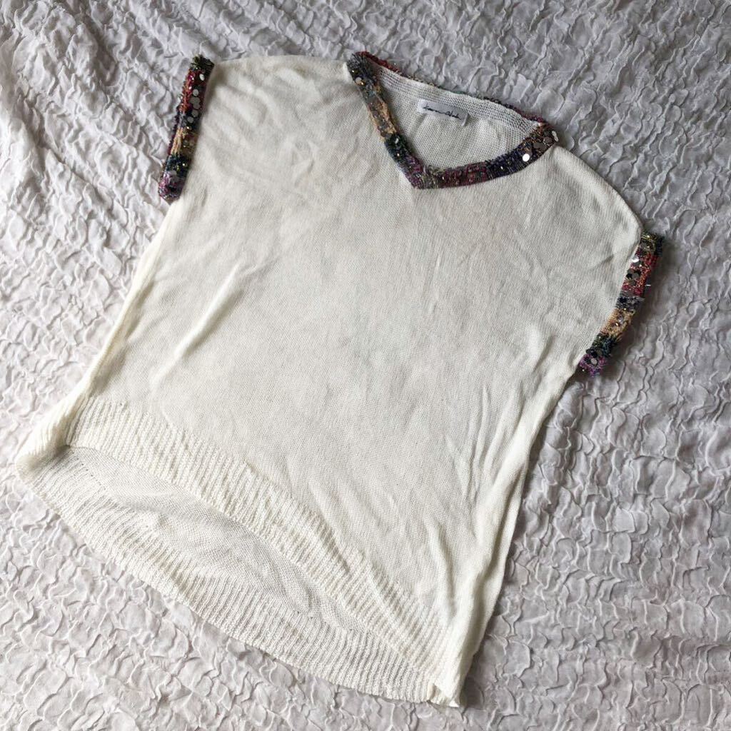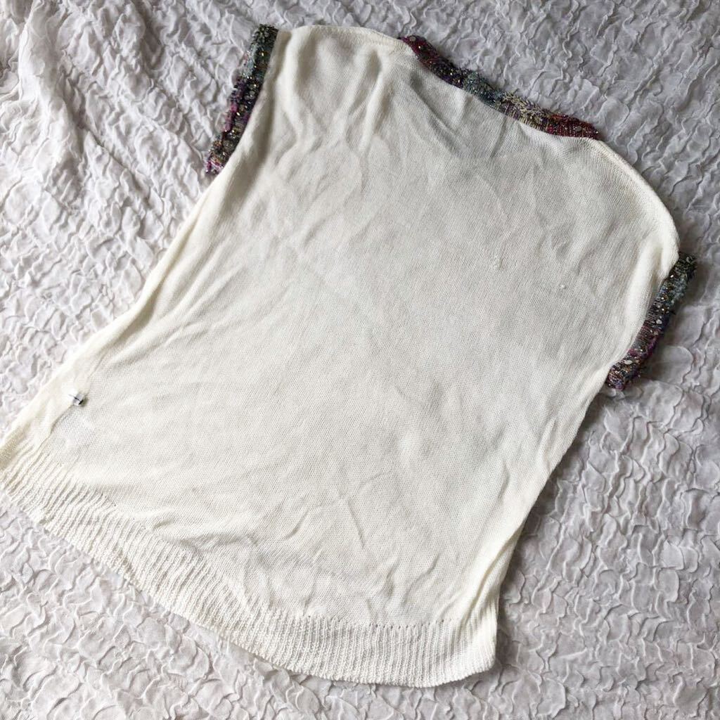 トリムのミックスカラーが可愛いデザインニットです。透け感あります。