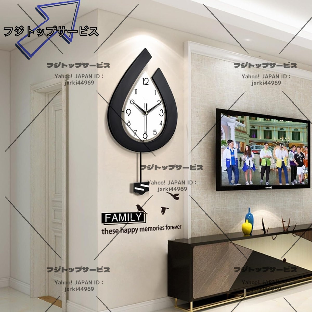 リビングルームの装飾用壁時計、大型モダン 掛け時計 スイングラウンド 壁時計 ガラスダイヤル時計振り子時計 電池式 57cm