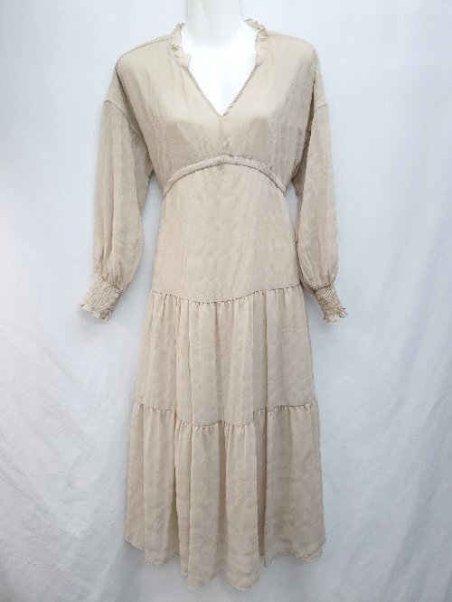 ◇ earth music&ecology シフォン ワンピース サイズF ベージュ レディース P