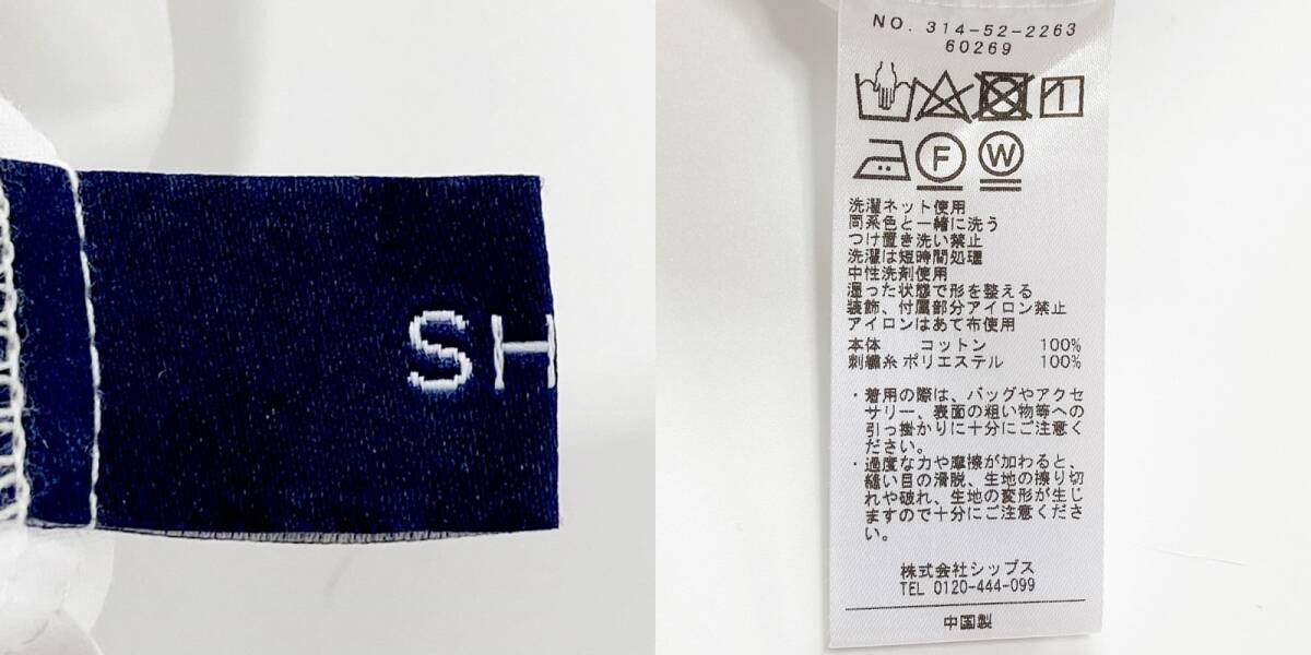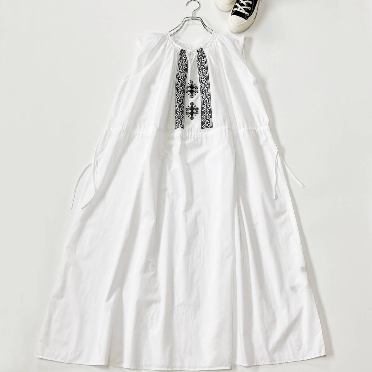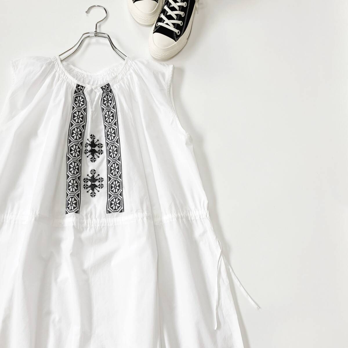 美品  SHIPS  シップス  ホワイト  コットンローン ドロスト 刺しゅうワンピース