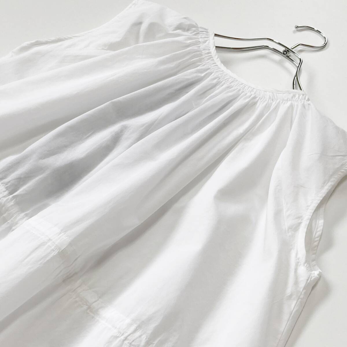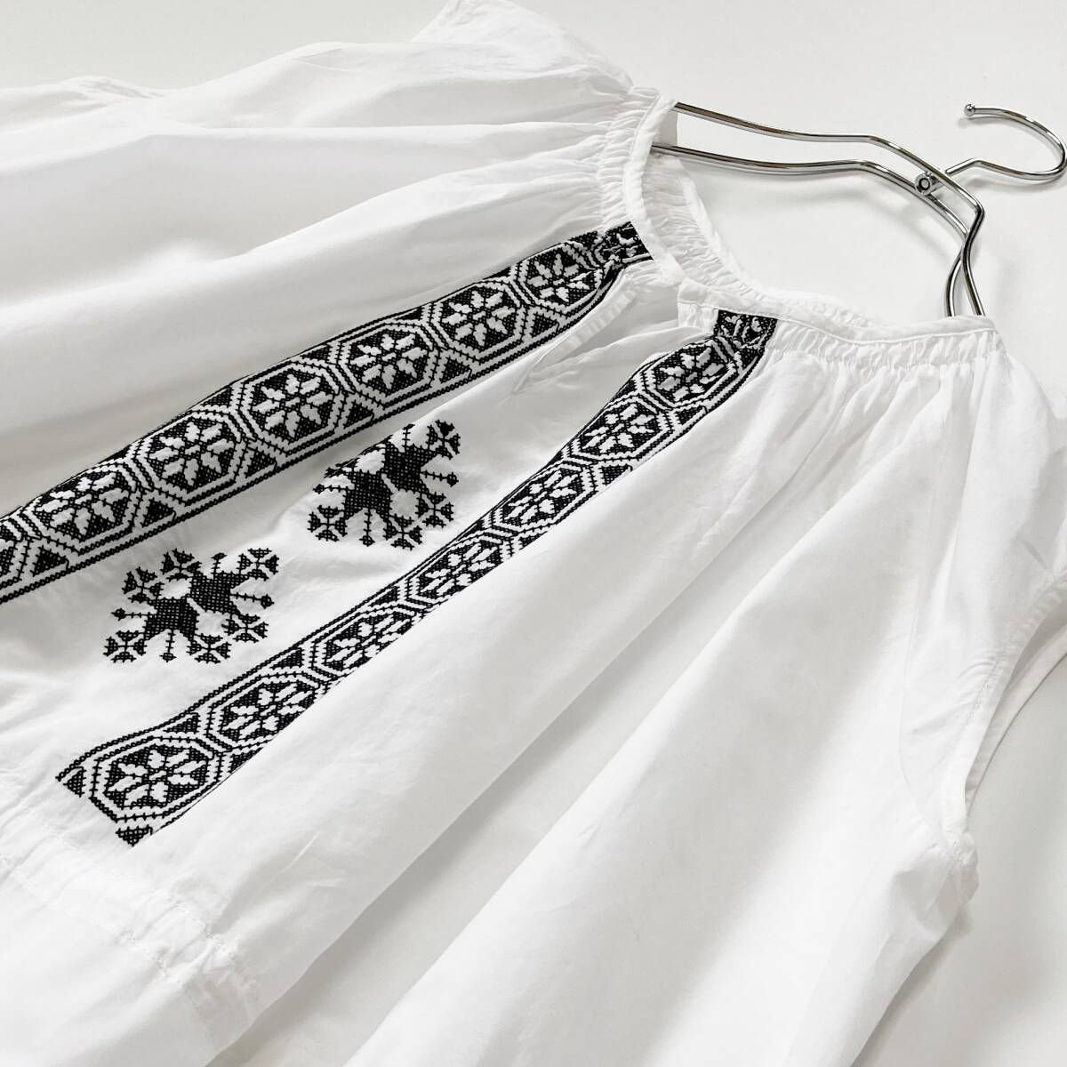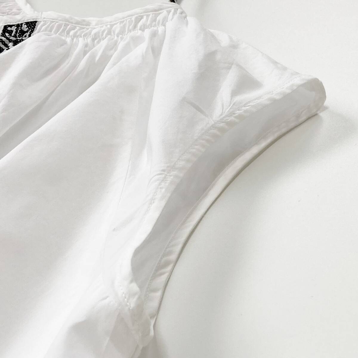 美品  SHIPS  シップス  ホワイト  コットンローン ドロスト 刺しゅうワンピース