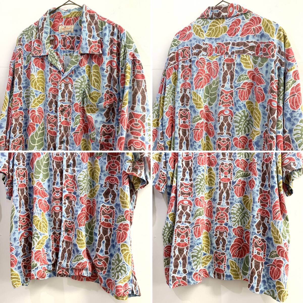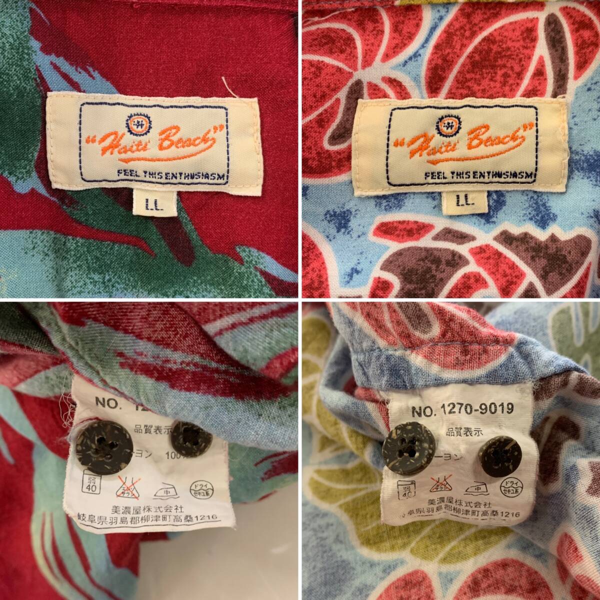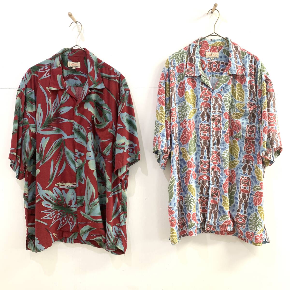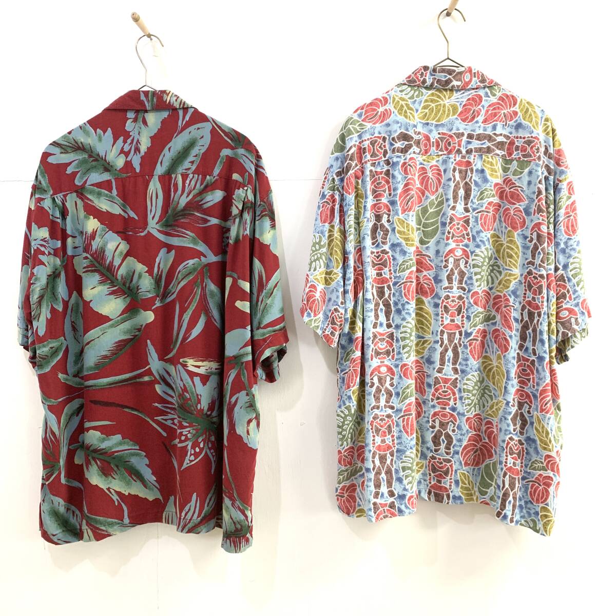 ☆2点おまとめ Haiti Beach 総柄 半袖アロハシャツ オーバーサイズ レーヨン100% ボルドー系 水色系 サイズLL 古着【送料一律/同梱可能】Kの出品です。