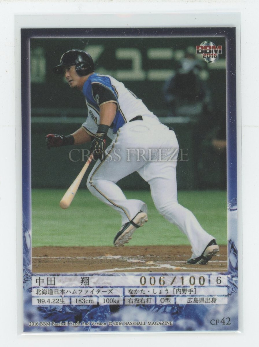 ★ジャージNo.シリアル★【中田翔(北海道日本ハムファイターズ)】2016 BBM 2nd Version 金紙版CROSS FREEZEインサートカード[006/100]