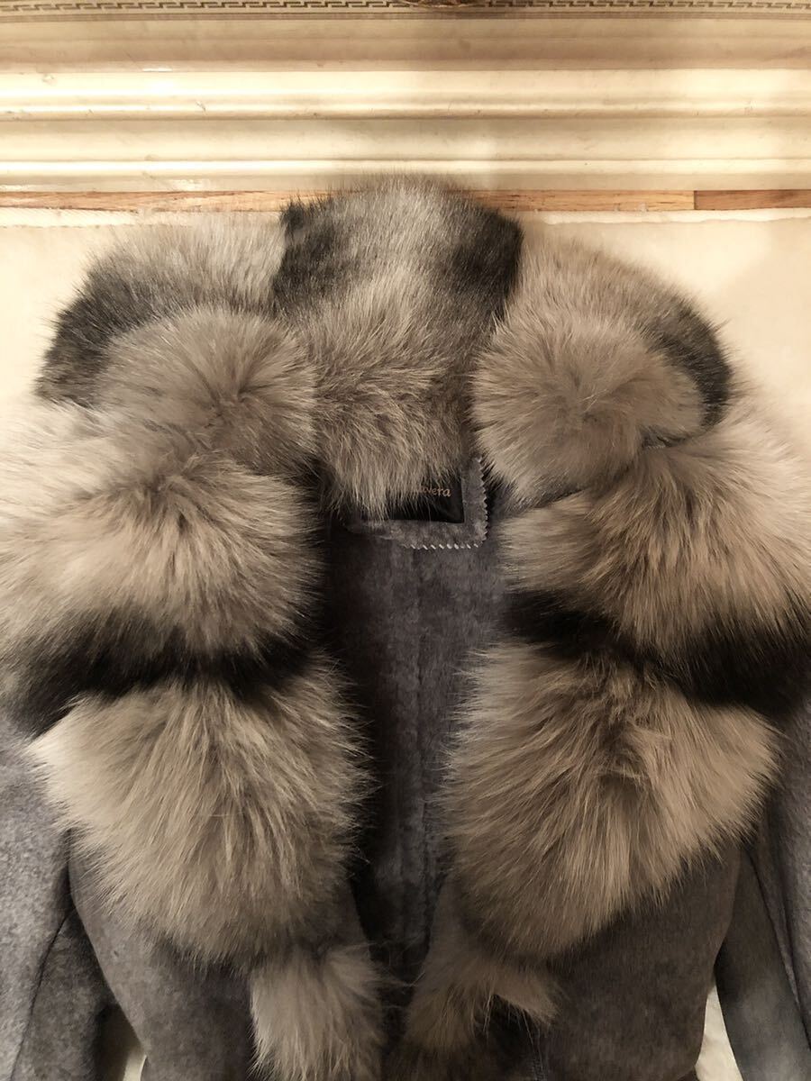 フォックスファーはブラックにライトグレーになり本体の羊革ラムレザーはライトグレーになりゴージャスな印象になります☆