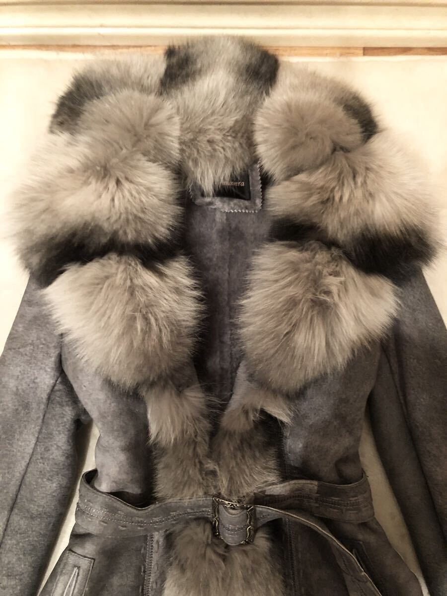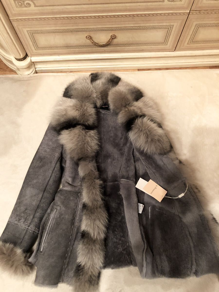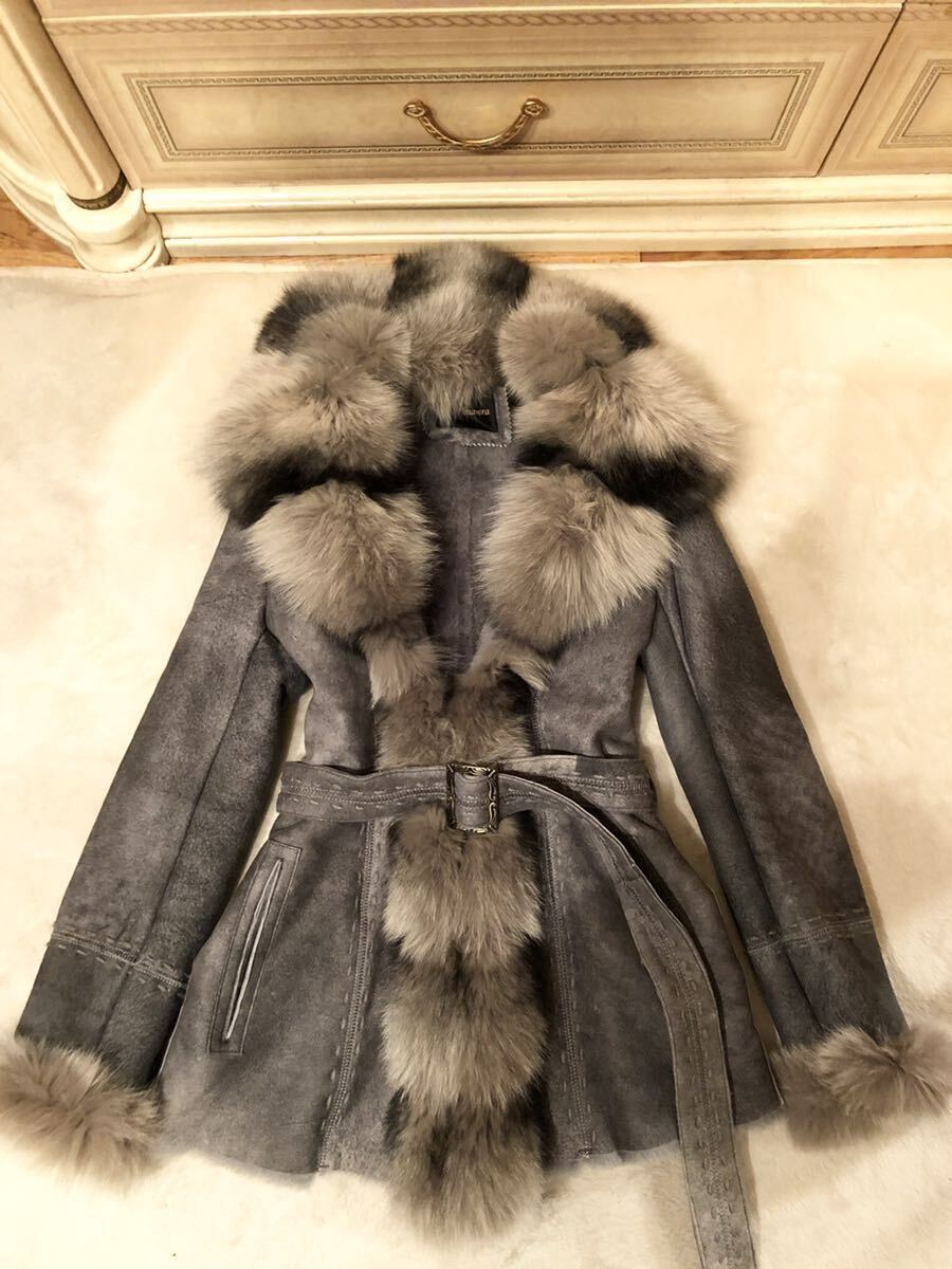 大変ボリュームと幅広な豪華なフォックスファーを仕様したゴージャスなムートンコートになります☆