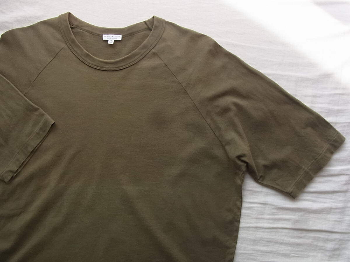 ビューティー & ユースのラグラン袖のTシャツになります。USEDで着用感と、5枚目の画像の様な畳に沿った色褪せが御座います。