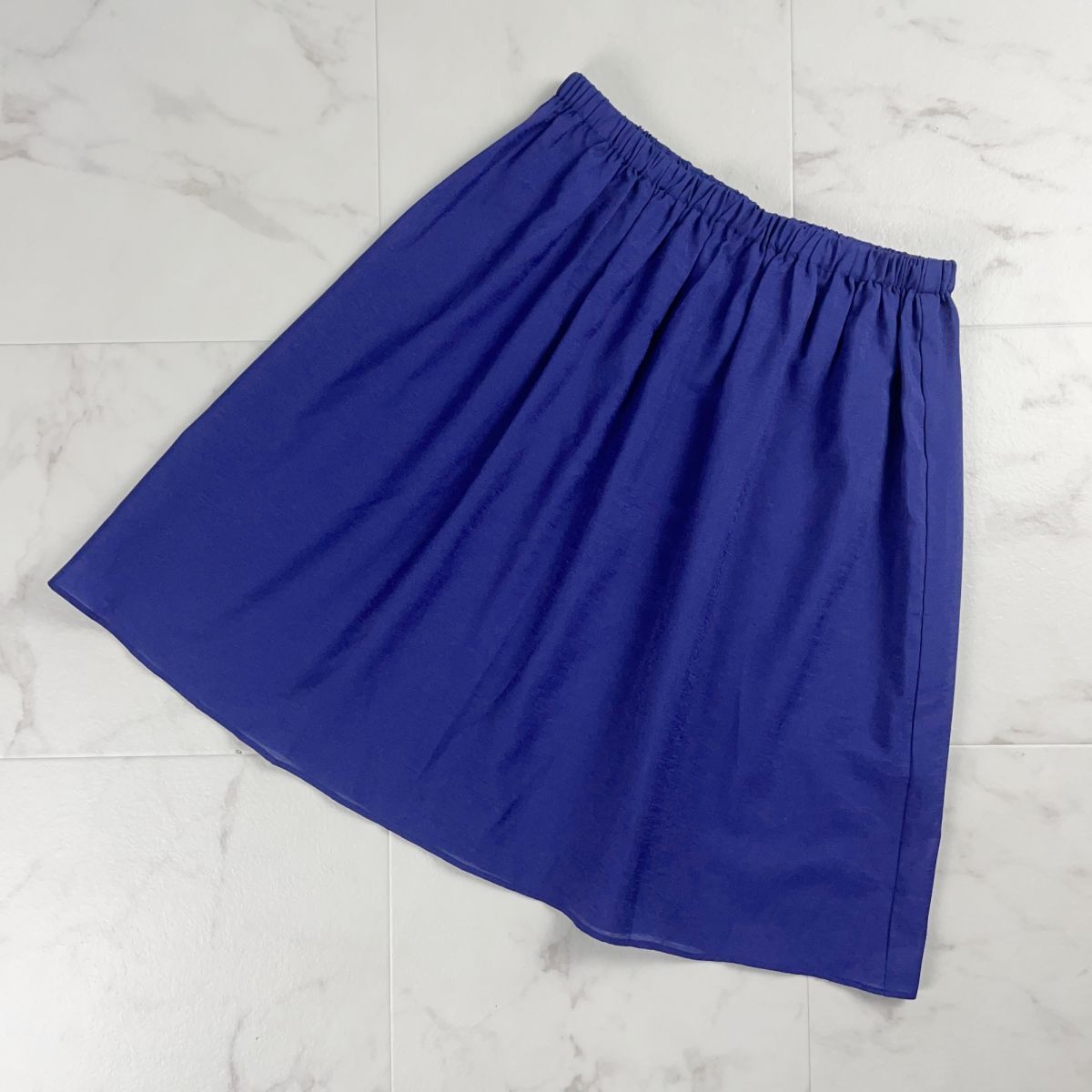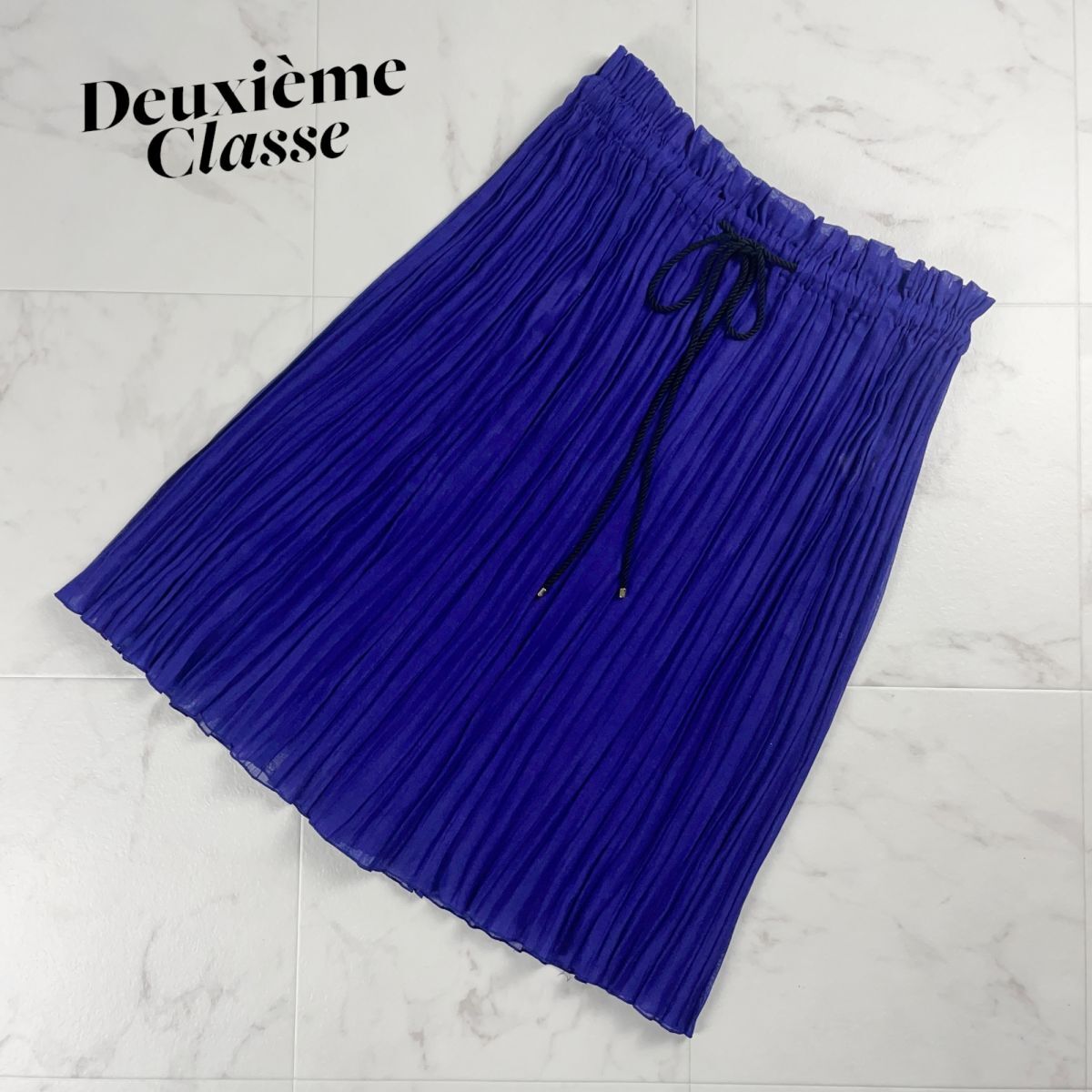 美品 Deuxieme Classe ドゥーズィエム クラス ギャザー細プリーツフレアスカート 膝丈 ペチコート付き レディース 青 サイズF*PC529