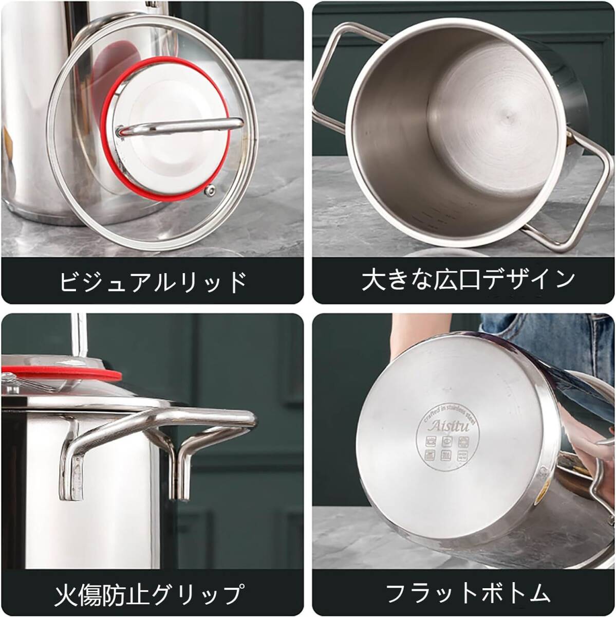 1.SUS304ステンレス製。優れた研磨加工により、鍋底は滑らかで焦げ付きにくく、お手入れが簡単です。熱伝導率の低いハンドルを装備し、握りやすく、火傷を防ぎます。ガラス蓋:強化ガラス(全面物理強化)、蓋の金属部分/ステンレススチール。