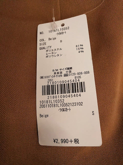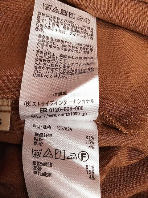 ap3485 ○送料無料 新品 earth music&ecology アース レディース ツイル スカート Sサイズ キャメル 楽ちん 後ろゴム ひざ下丈 シンプル