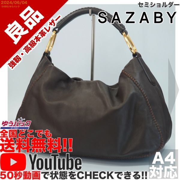 送料無料 即決 YouTube動画アリ 定価38000円 良品 サザビー SAZABY エートート セミショルダー レザー バッグ 58